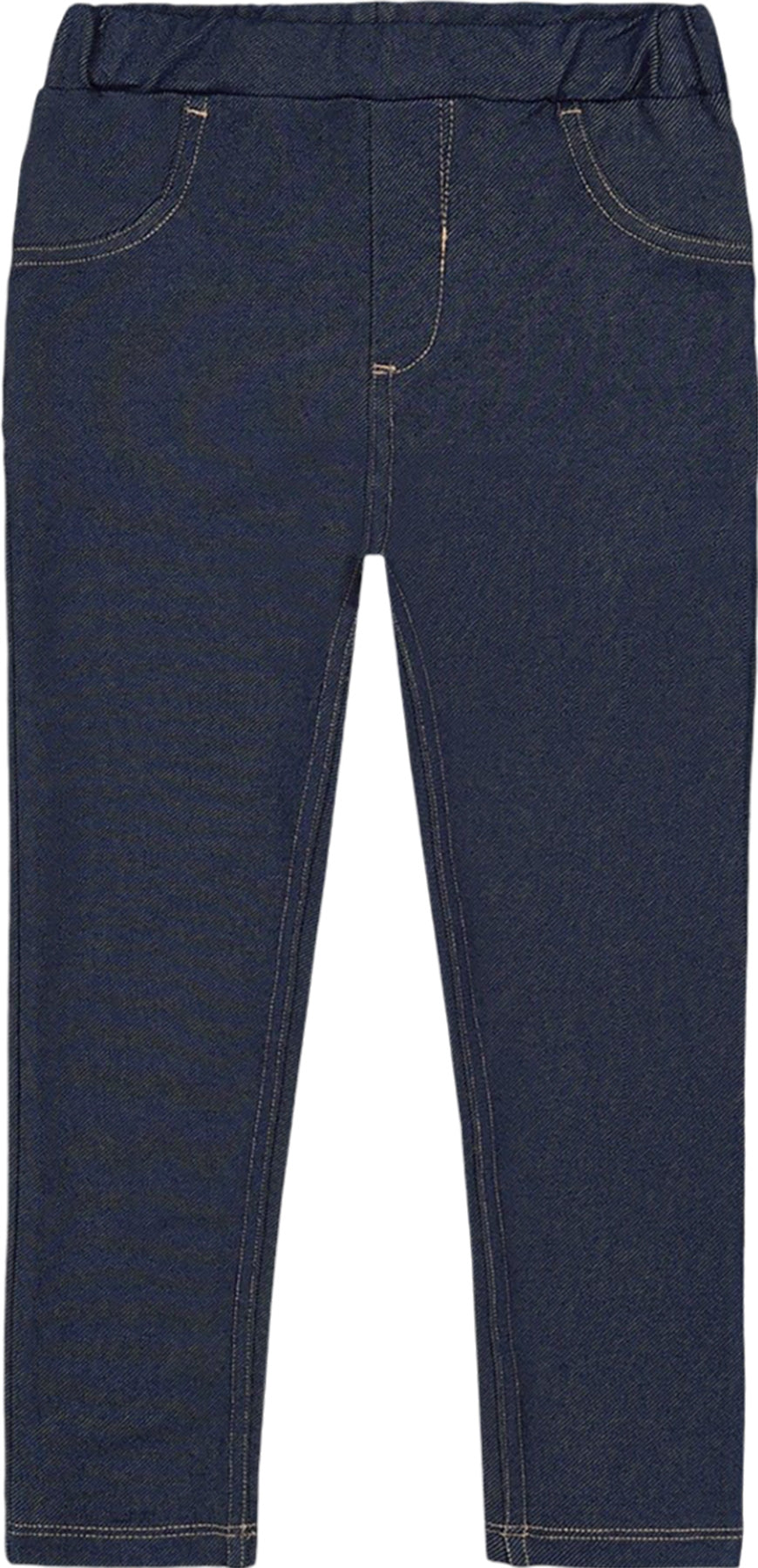 Contrast topstitching gives our Jeggings Dark Blue Denim the look of a real denim pant. Super soft and stretchy in cotton/poly/elastane, these jeggings feature an easy pull-on fit with an elastic waistband, faux front pockets and back patch pockets with stitched details.