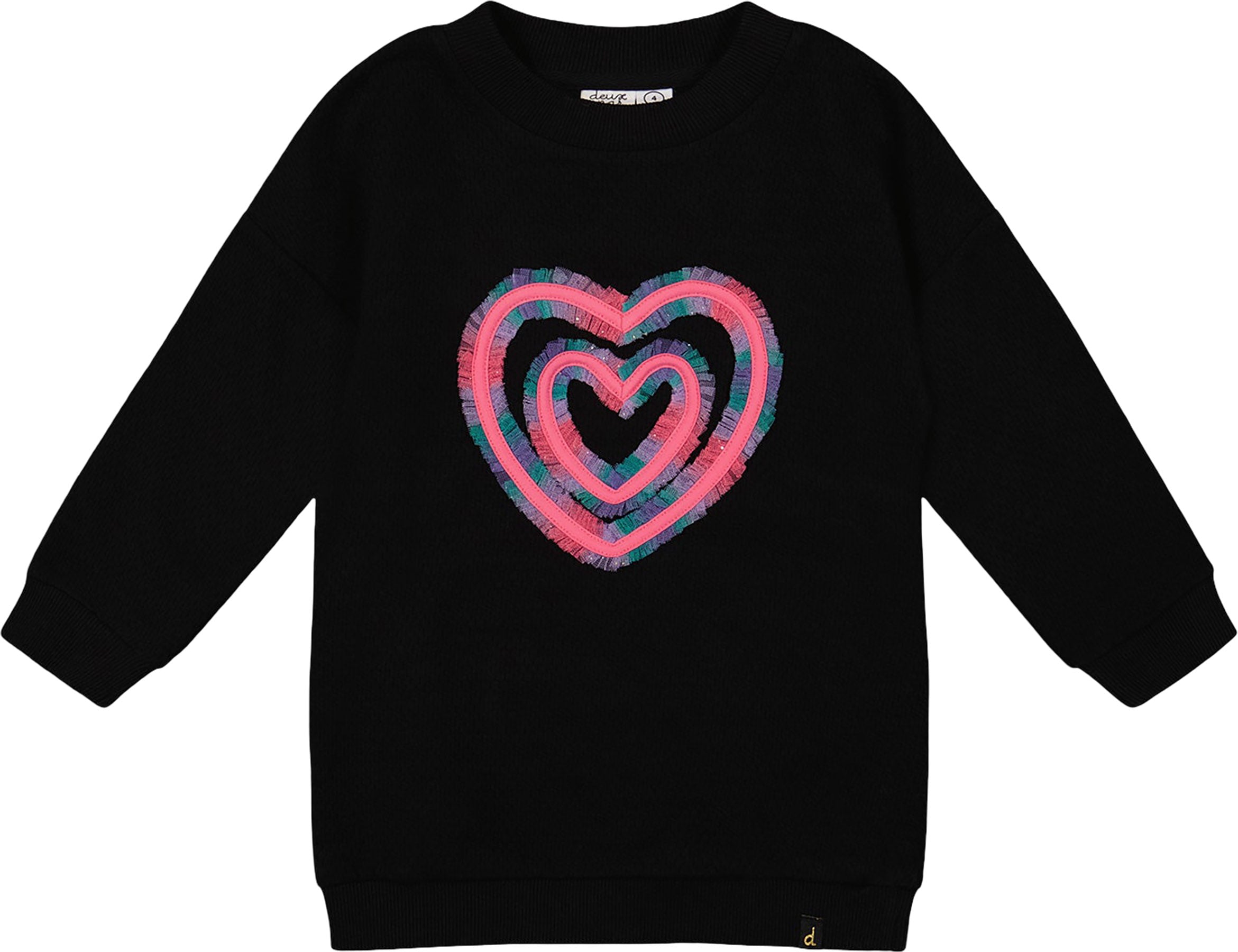 Our Fleece Jacquard Tunic Black With Heart Applique blends cozy texture with bold attitude. This long-sleeve tunic features a subtle jacquard dot pattern, ribbed cuffs and hem, and a textured double heart applique that brings a touch of originality to her day. Pair it with leggings or skirts from our Let’s Dance! collection for an outfit full of personality and charm.