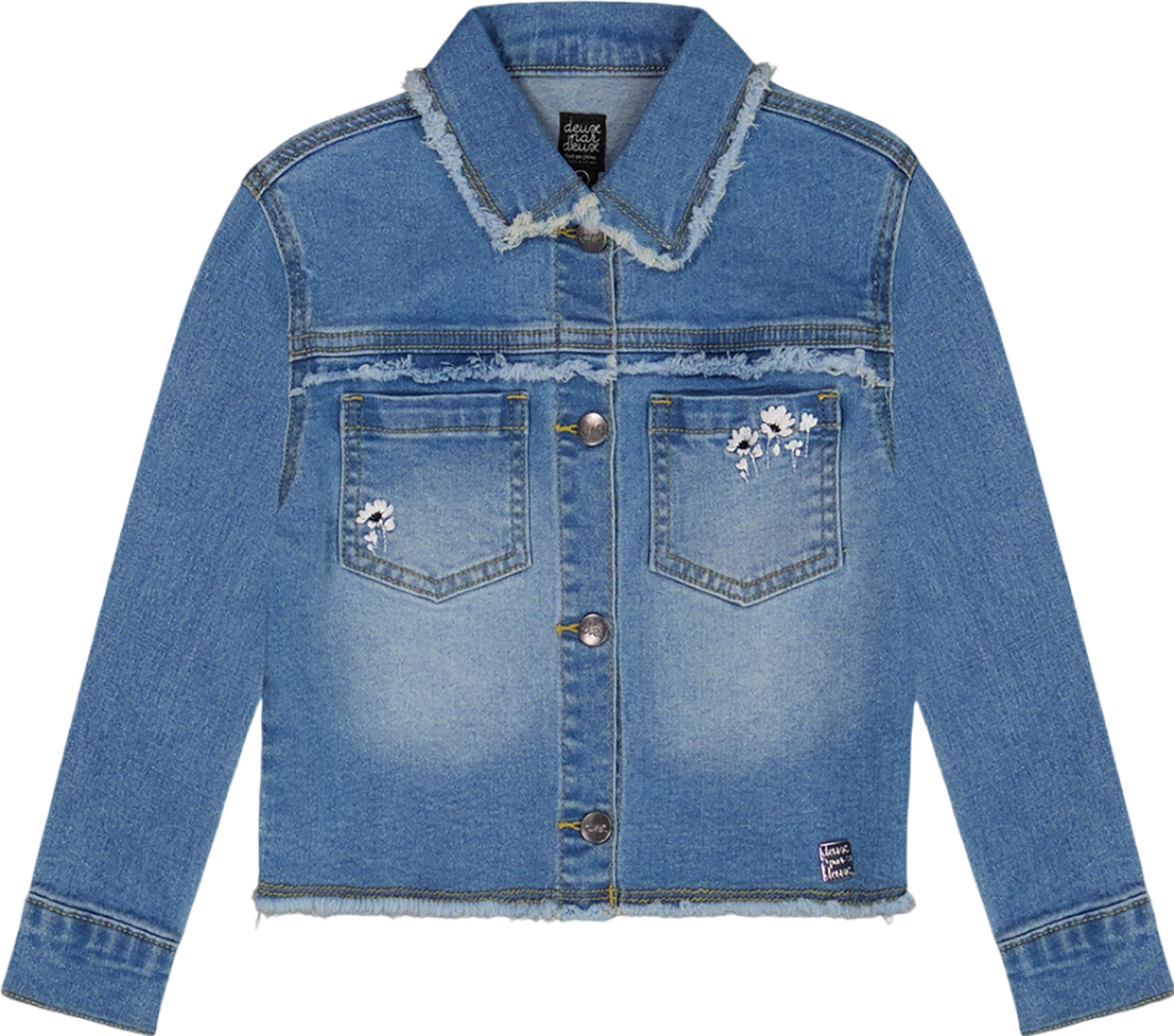 Features • Long sleeve denim jacket • Frayed accents • Floral embroidery • From 2 years to 14 years