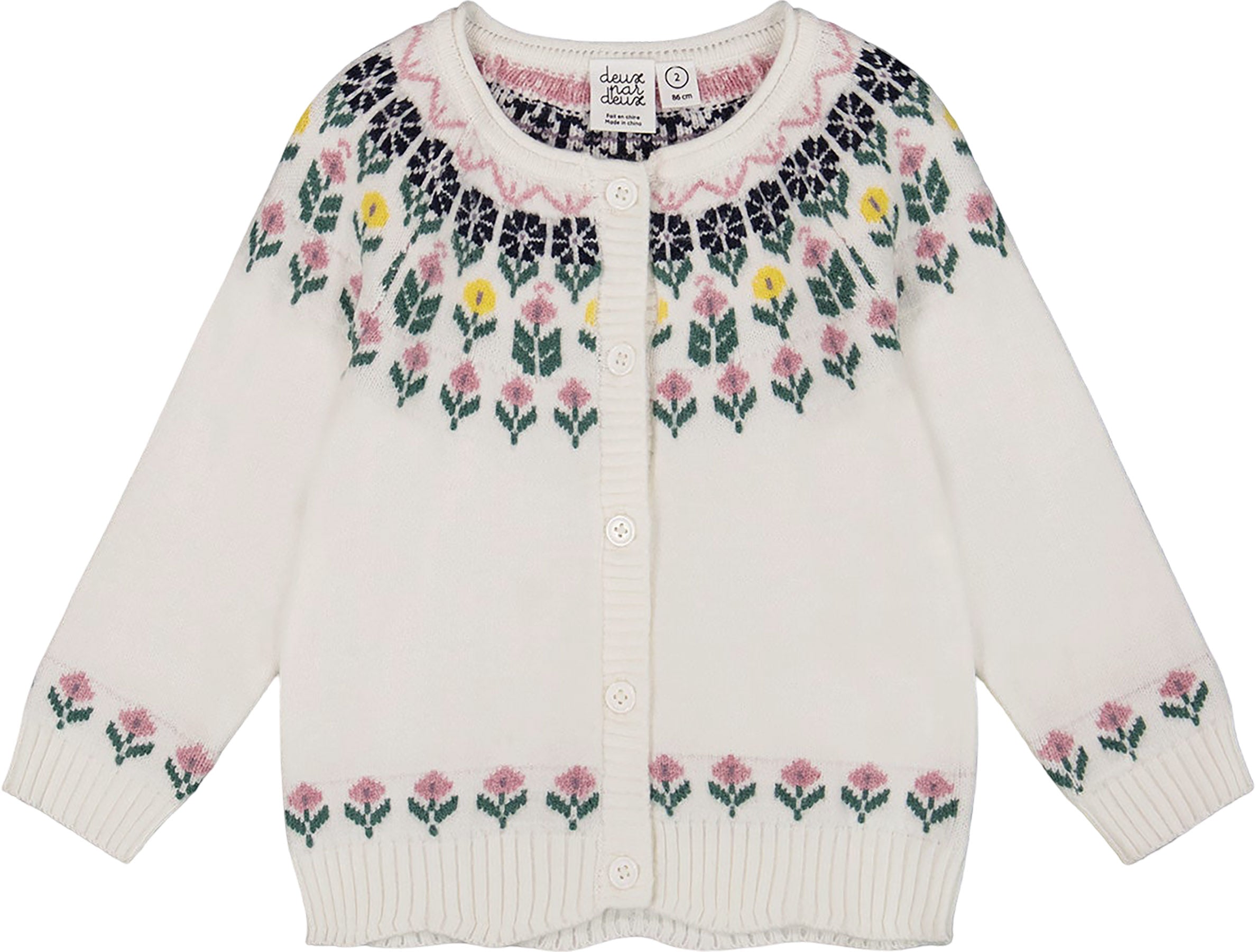 Jacquard Knit Cardigan with Floral Pattern - Baby Girl