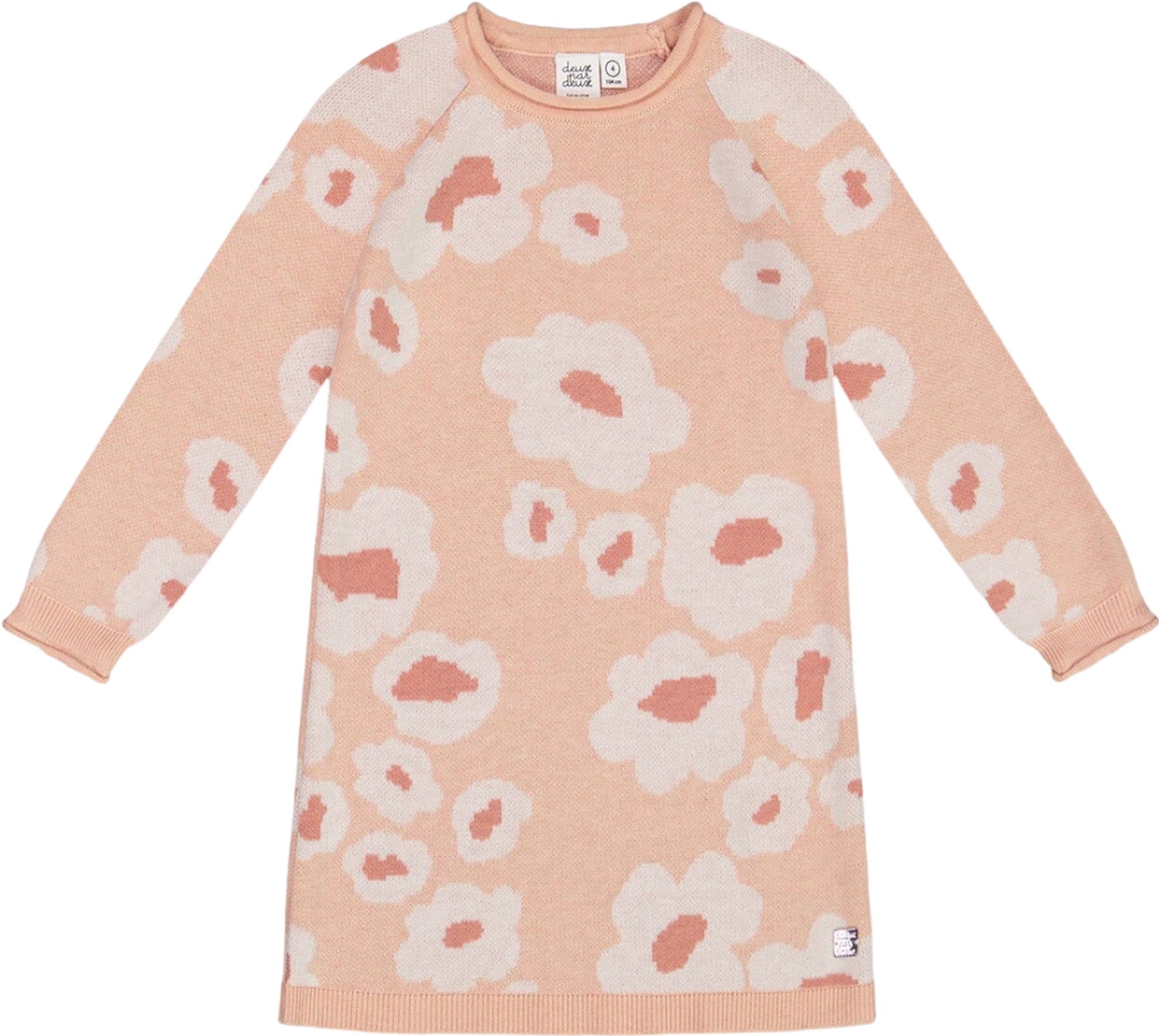 Large flowers make our Jacquard Retro Flower Knit Dress Light Pink a fresh addition to any little girl's wardrobe. This darling design is super soft and cozy in a classic shift silhouette with long raglan sleeves, a round neckline and an allover jacquard floral pattern. It's detailed with a rib knit hem and rolled edges at the neck and cuffs.