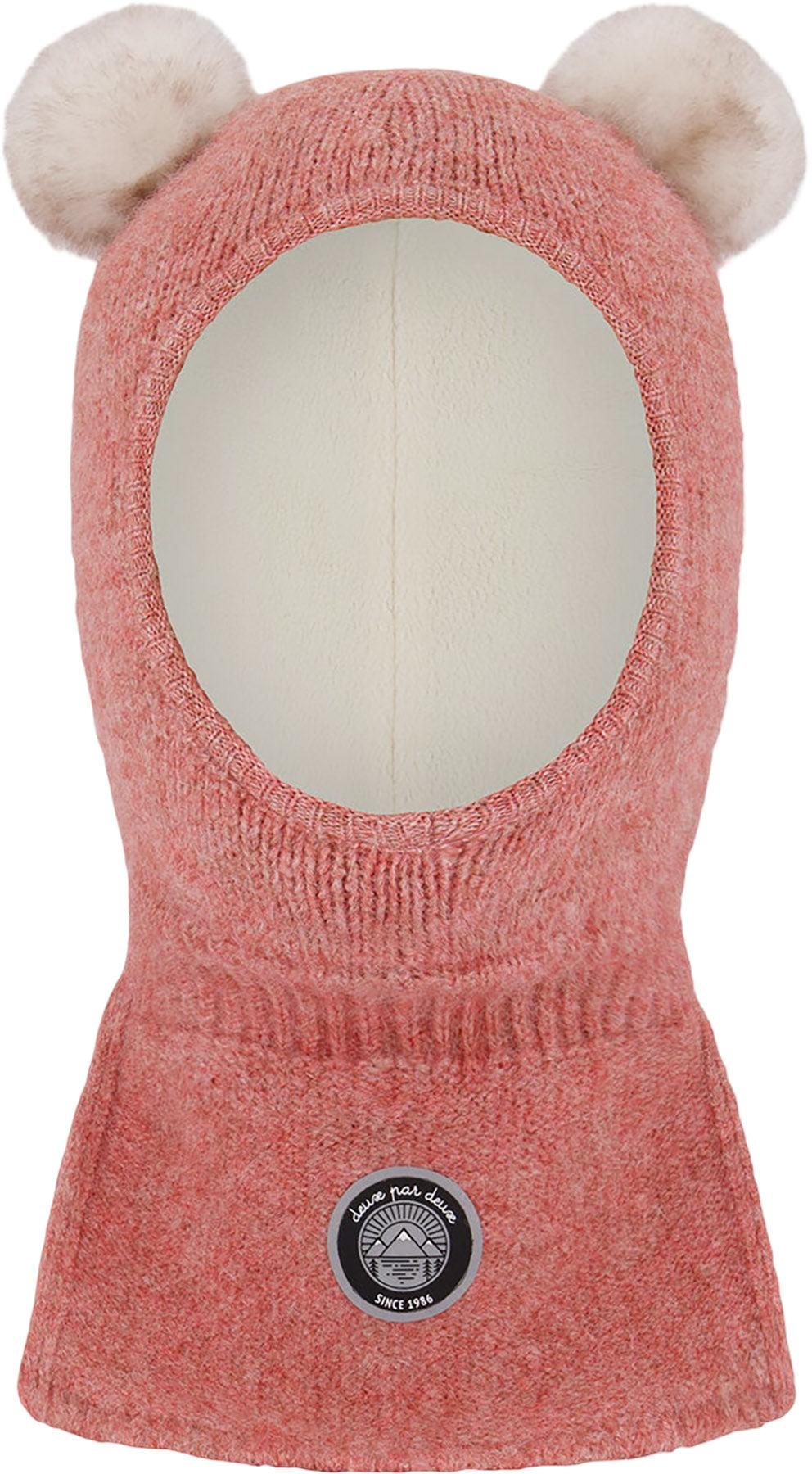 Designed to cover the head, ears, and neck, this balaclava ski hood offers essential protection with an adorable twist. Lined with polar fleece for added warmth, it features pompom ears, rib knit trim, and a distinctive logo patch for a touch of signature style.