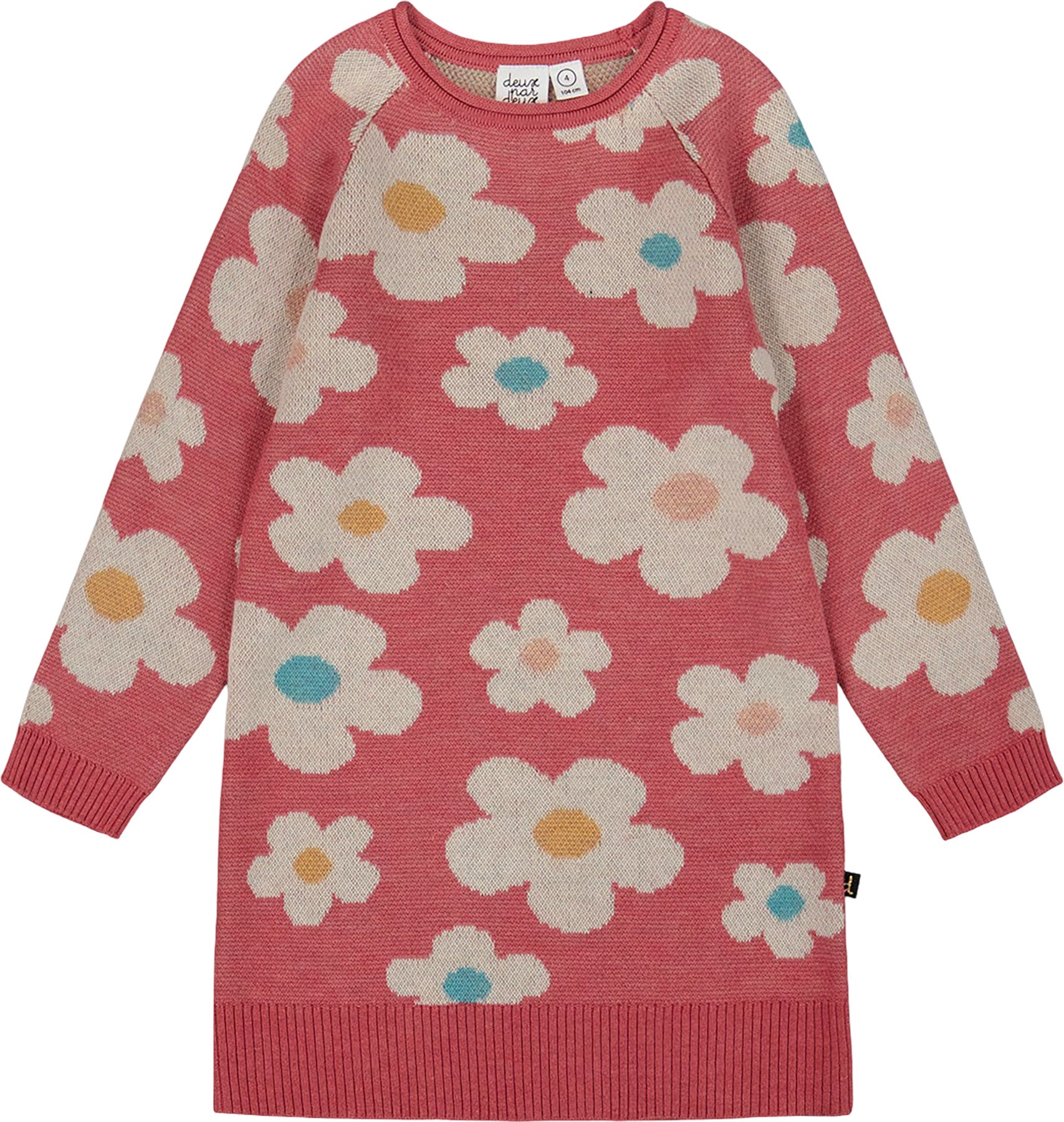 This charming Knitted Dress With Flower Jacquard Old Pink and Beige is perfect for her playful days! Made from a cozy and soft knitted jersey, the dress features a beautiful jacquard pattern with flowers in soft tones of old pink and beige. The relaxed fit, long sleeves, and ribbed trims add comfort and warmth, while the textured knit brings a fun, stylish vibe. Ideal for any occasion, this dress will pair effortlessly with our leggings or tights from the The Sixties Are Back collection, making it the go-to piece for her wardrobe.