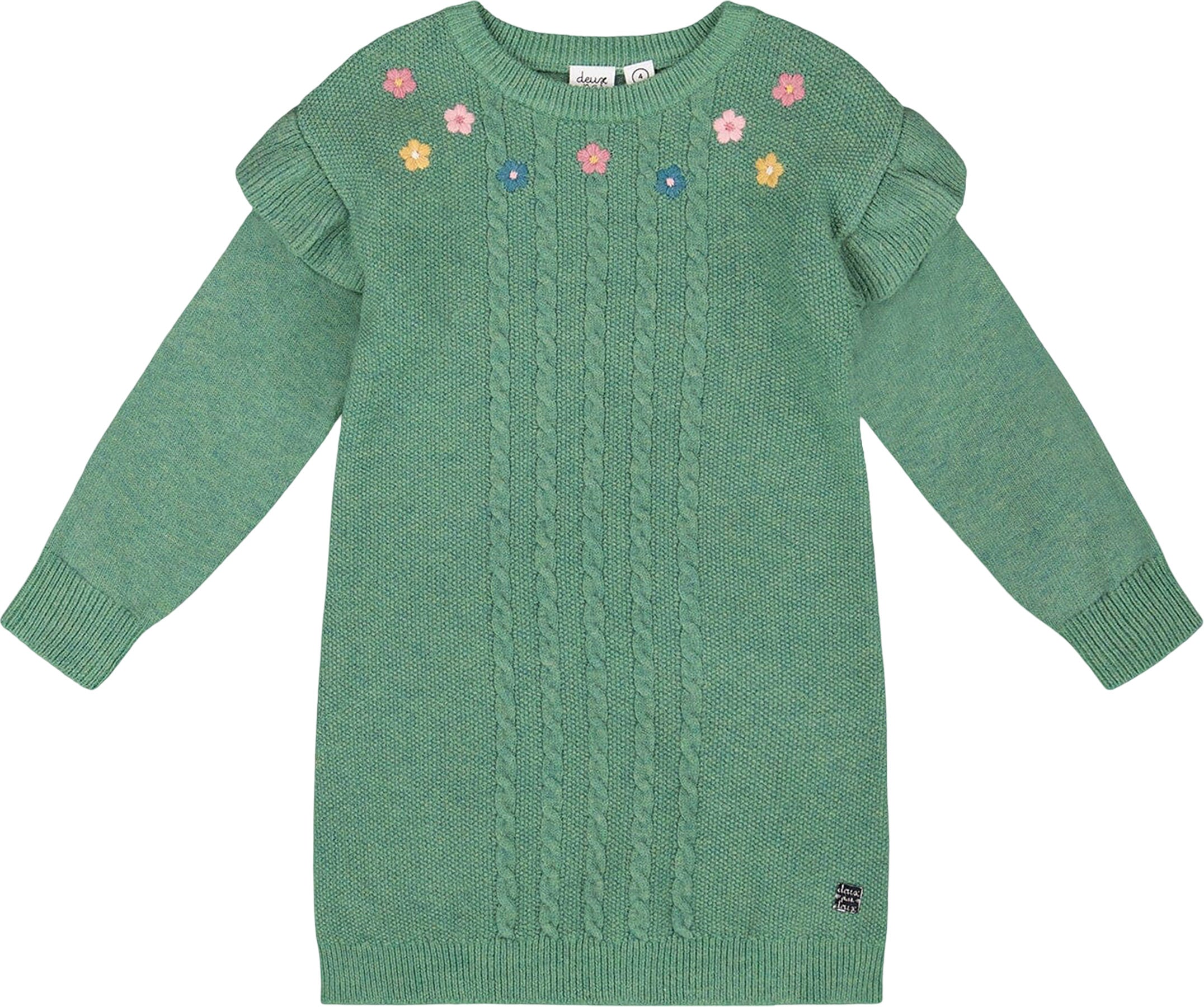 Knitted Dress with Ruffles and Floral Embroidery - Little Girl