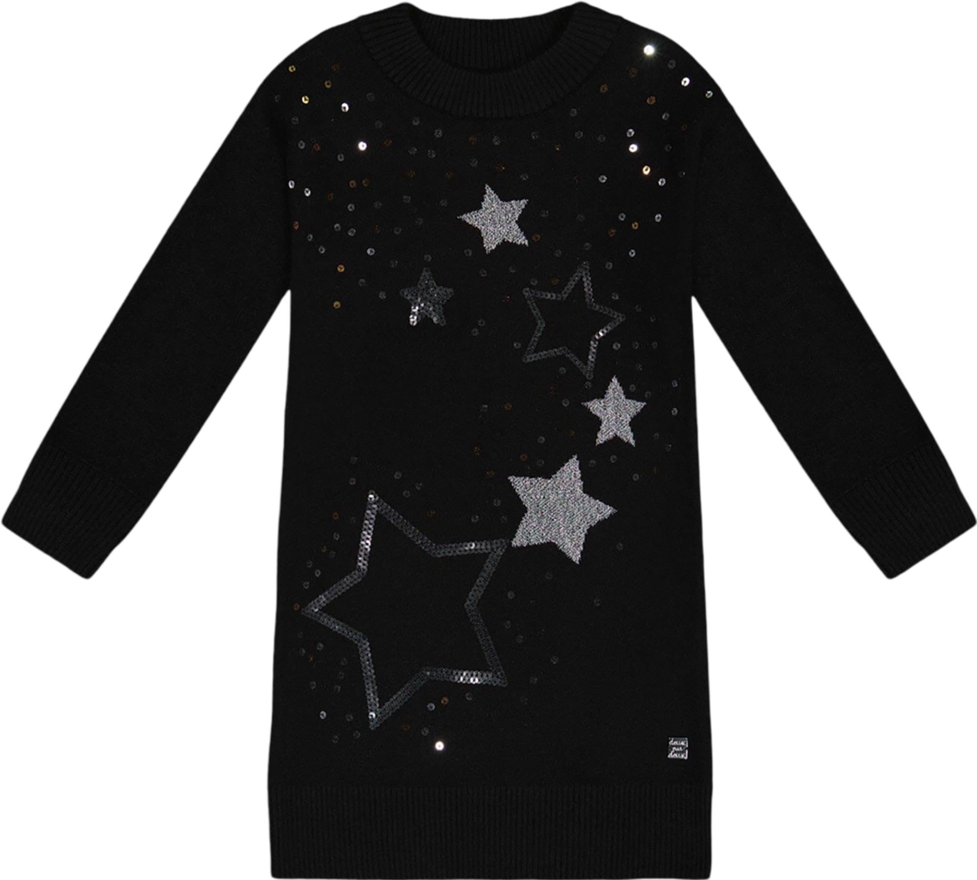If she loves a bit of glitz, she's sure to adore our Knitted Dress with Sequins Black! This sweater dress features a shift silhouette with long sleeves, a round neckline and rib knit trim at the neck, cuffs and hem. Large silver sequin stars make it shimmer and shine!
