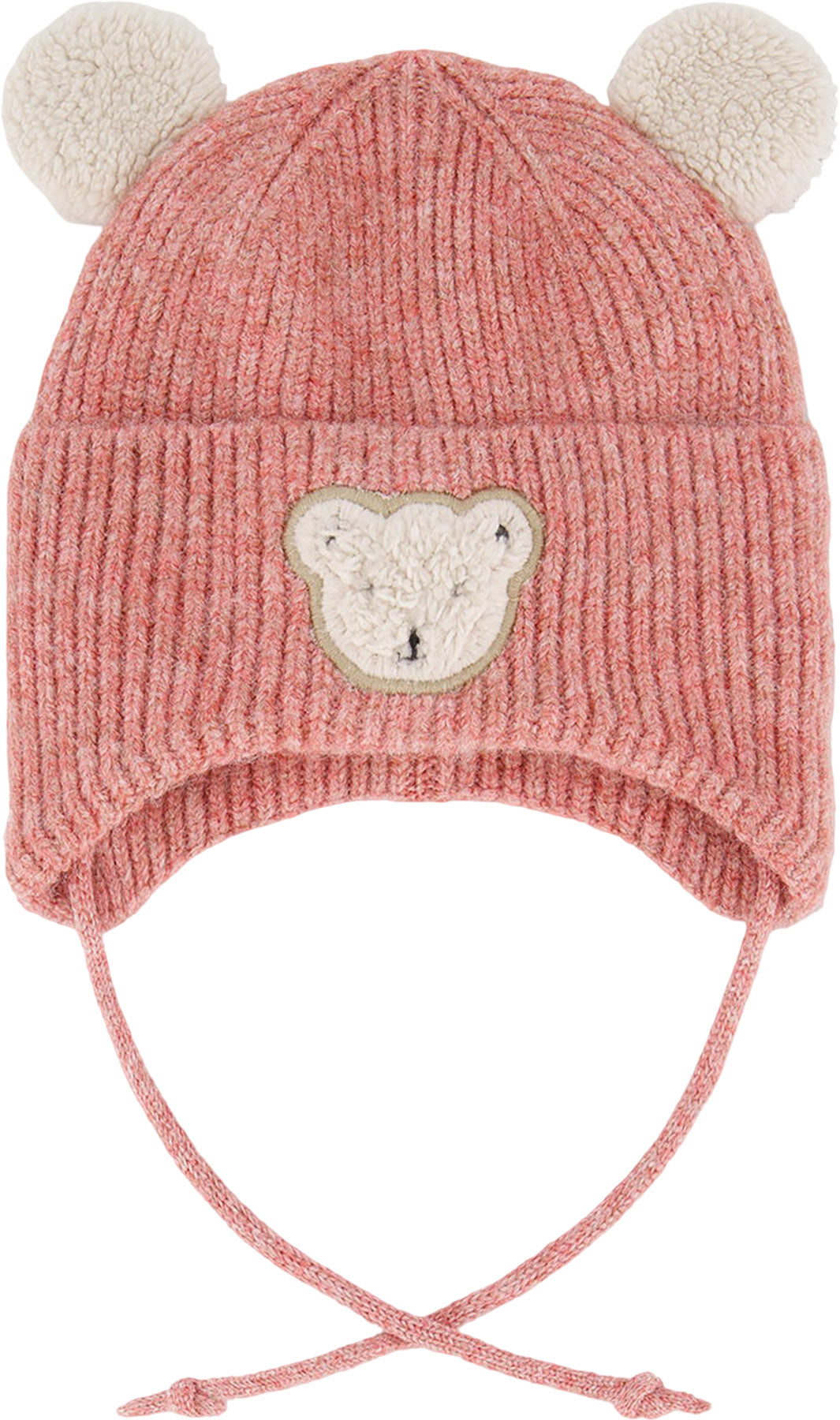 Sherpa ears and a polar fleece lining make this knit cap for babies perfect for cold winter outings. This soft, stretchy hat features a rib knit texture, ear flaps to protect little ears from the cold and wind, and a sherpa bear face on the front.