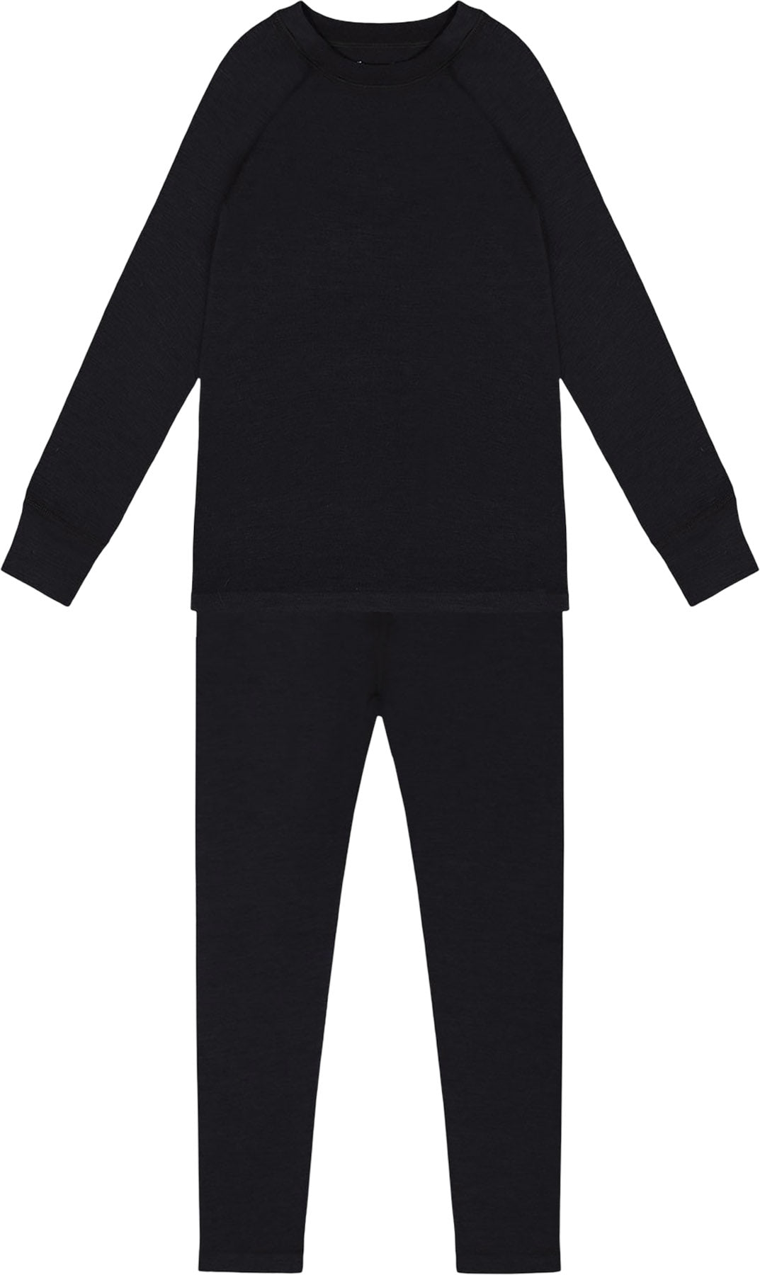 Designed to be worn underneath a snowsuit, these essential base layers make every moment on the mountain warmer and more comfortable. In soft merino jersey, this two-piece thermal underwear set features a long raglan sleeve top with a round neckline and a pull-on pant with a stretch elastic waistband.