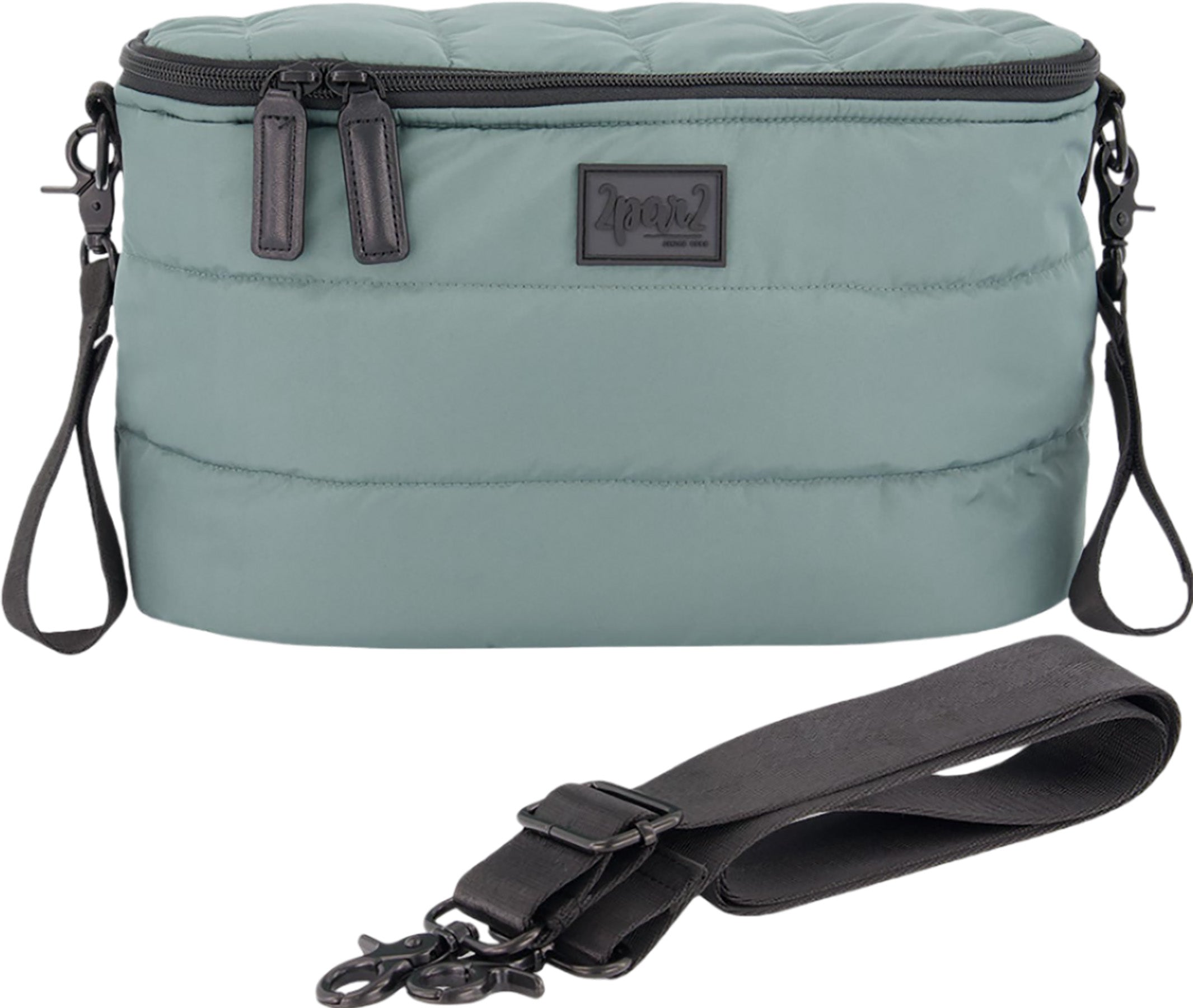 Features • Water-resistant treated fabric • Large adjustable and detachable shoulder strap • 2 small detachable straps for attaching to the stroller • 6 interior elasticized pockets for baby bottles and jars • 1 interior zippered pocket • Faux leather zipper pulls