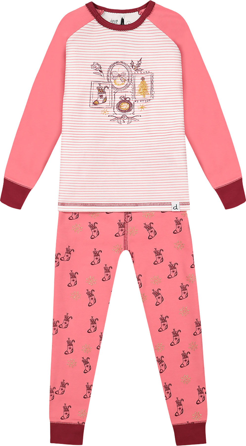 Encourage her to dream big with our Organic Cotton Long Sleeve Two Piece Printed Unicorns Pajama Navy. Featuring an allover print of unicorns, constellations, planets and shooting stars, this set features a long raglan sleeve top with a crew neckline, contrast solid sleeves and a matching pull-on pant with a stretch elastic waistband.