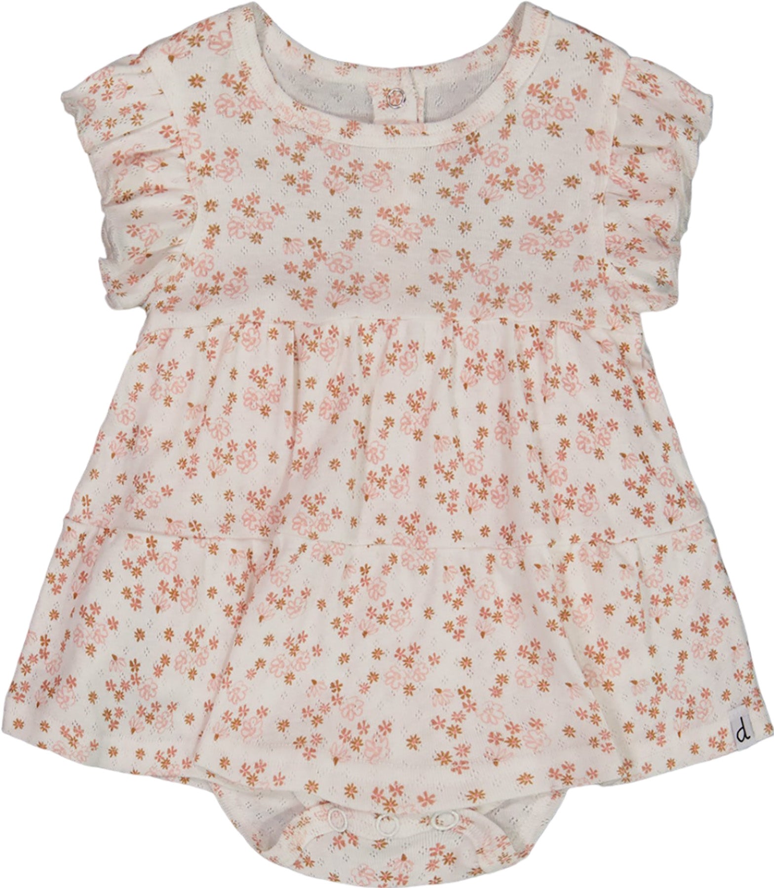 Features • Tiered dress • Flutter sleeves • Bottom snaps • From 3 months to 24 months