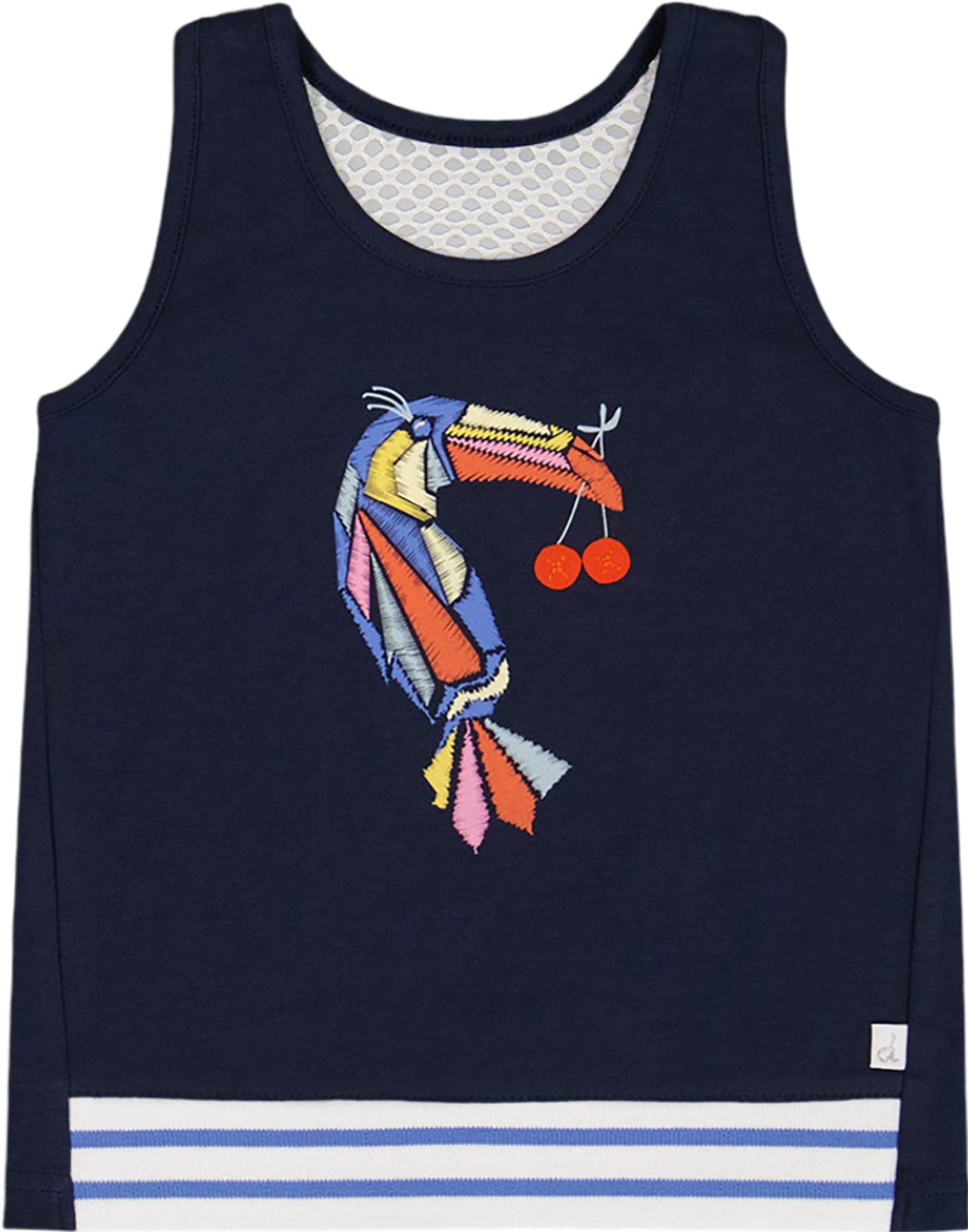 Features • Sleeveless tank top • Mesh back panel • Striped rib knit trim • From 2 years to 14 years