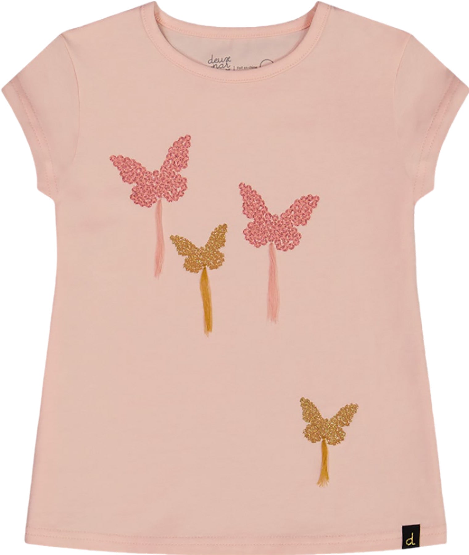 Features • Short sleeve tee • Round neckline • Butterfly applique • From 2 years to 12 years