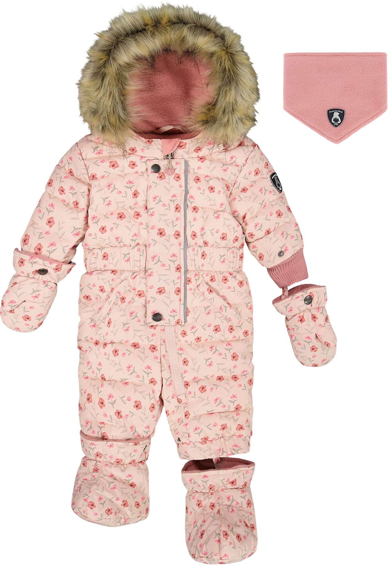 Breathable, waterproof, and designed for warmth in temps as low as -30°C(-22°F), this one-piece Baby Original winter suit keeps baby safe, warm, and dry in the harshest winter weather. With detachable mitts and boots for added coverage and comfort, this snowsuit features a fleece-lined body and hood, extendable cuffs, an adjustable waist, and ankle snow guards to keep moisture out. A polar fleece neckwarmer is included for added warmth.