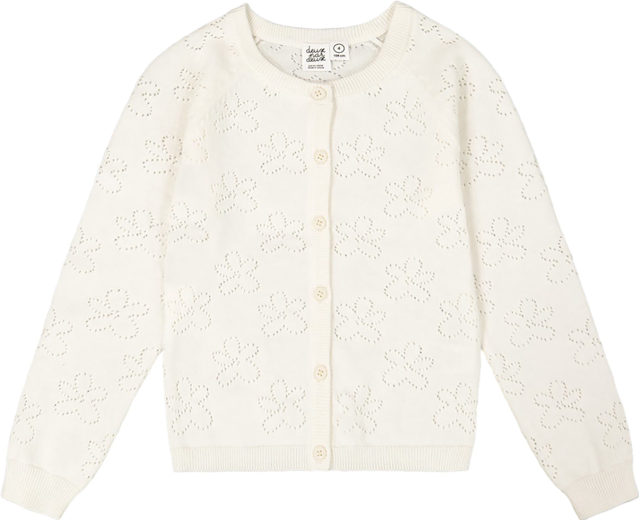 Features • Long sleeve sweater • Pointelle texture • Button front closure • From 12 months to 14 years