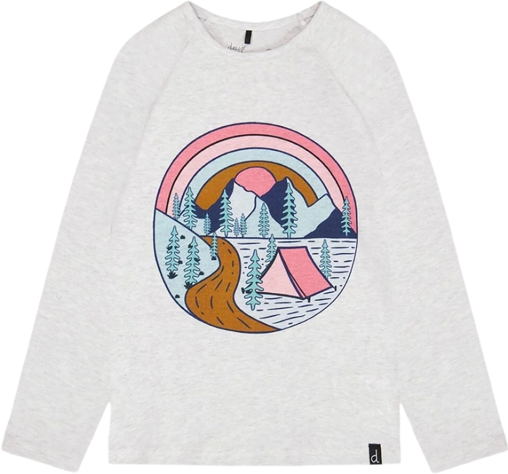 Our Raglan Sleeve T-Shirt with Print adds instant charm to any little girl's casual wardrobe. Soft and stretchy in a cotton/elastane blend, this tee features long raglan sleeves, a round neckline and an adorable camping graphic with mountains and trees.