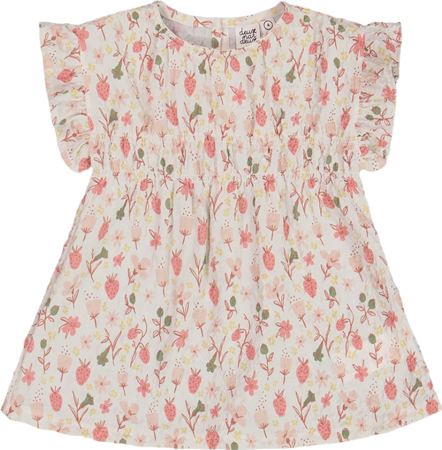 With little ruffles on each sleeve, our Printed Seersucker Blouse with Frills Pink Flowers on Cream Background is equal parts comfy and cute. This adorable top features short sleeves, a round neckline, a stretch elastic panel across the chest, and a keyhole at the back neck. Team it with any bottom in our A Summer Dream collection!