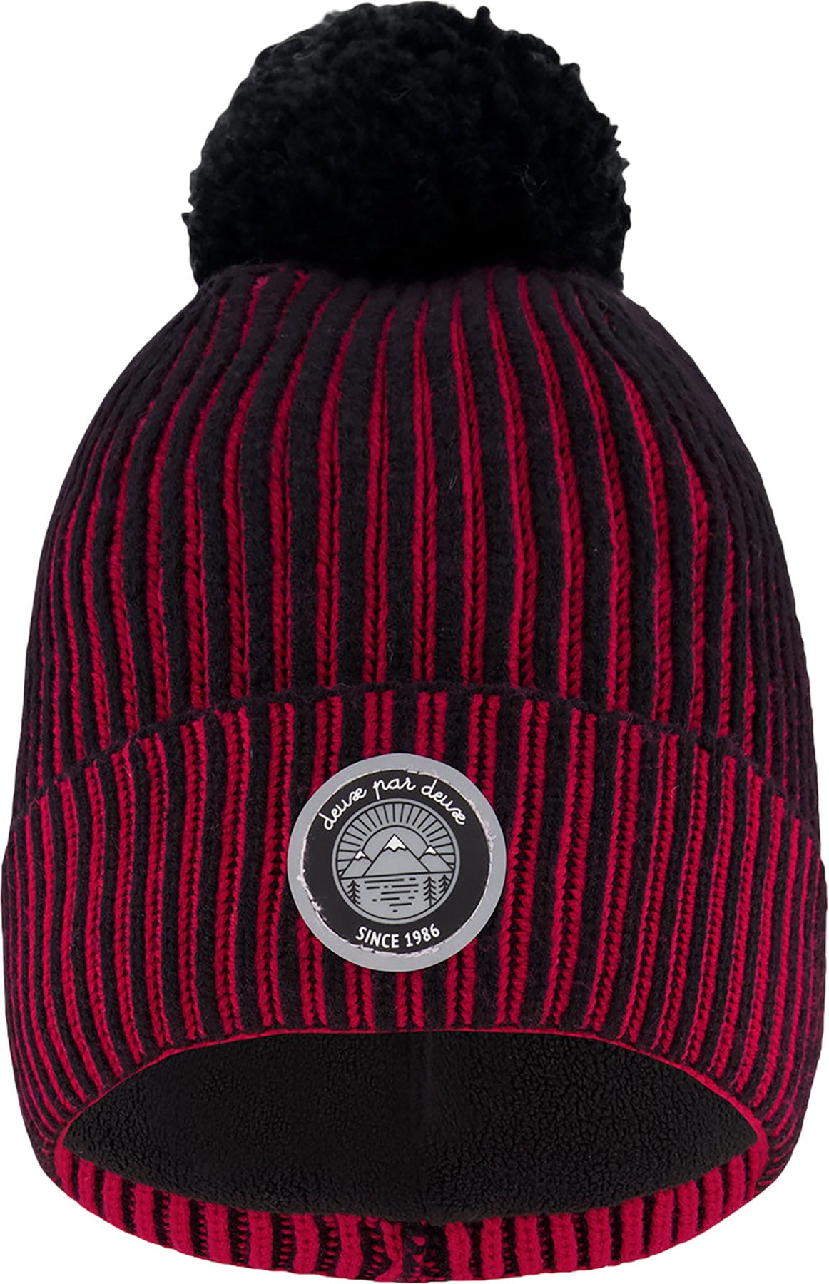 Red-Black Lined Knit Pompom Hat - Little Boy