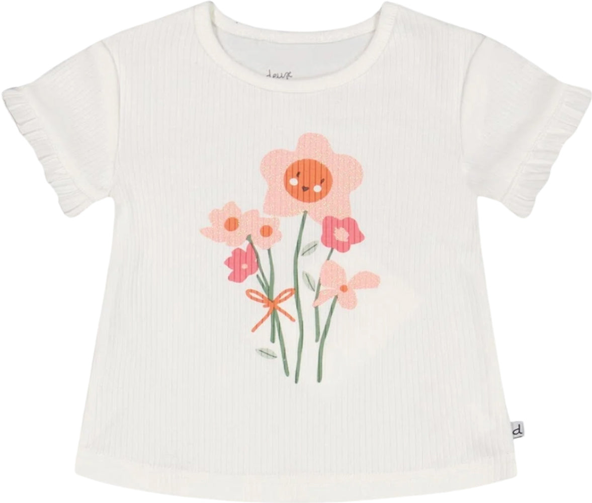 Vertical ribbing adds the perfect amount of texture to our Rib Top With Print. In soft stretch cotton, this ribbed tee features short sleeves with ruffle trim, a round neckline and a floral graphic print on the chest. Team it with our ribbed leggings for a super-cute coordinated look!