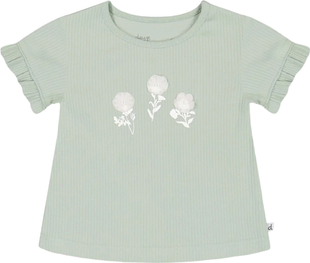 Vertical ribbing adds the perfect amount of texture to our Rib Top With Print. In soft stretch cotton, this ribbed tee features short sleeves with ruffle trim, a round neckline and a floral graphic print on the chest. Team it with our ribbed leggings for a super-cute coordinated look!