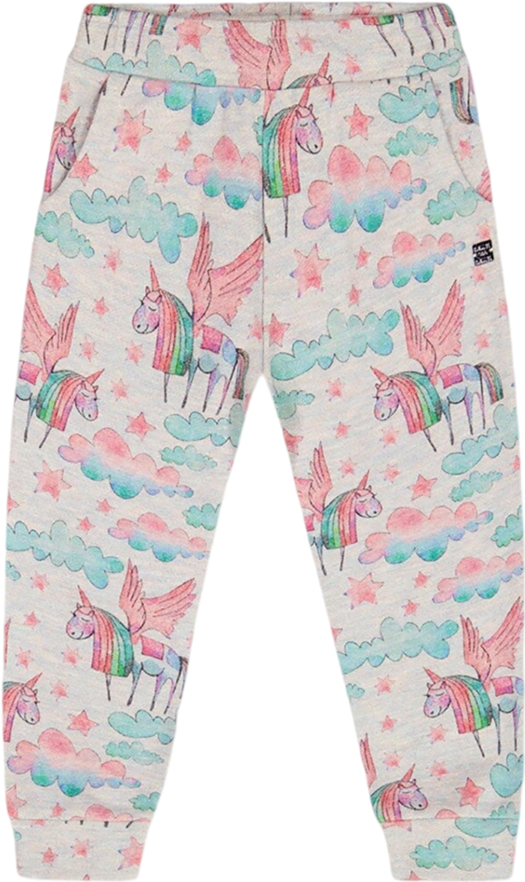 It's impossible not to love our Shiny French Terry Sweatpants Gray Mix Printed Unicorn. Featuring a colorful allover print with unicorns and clouds, this whimsical jogger pant is made from a soft stretch cotton blend with lurex for added shimmer and shine. Detailed with a comfy elastic waistband and scoop front pockets, it's even better when teamed with a matching hoodie!