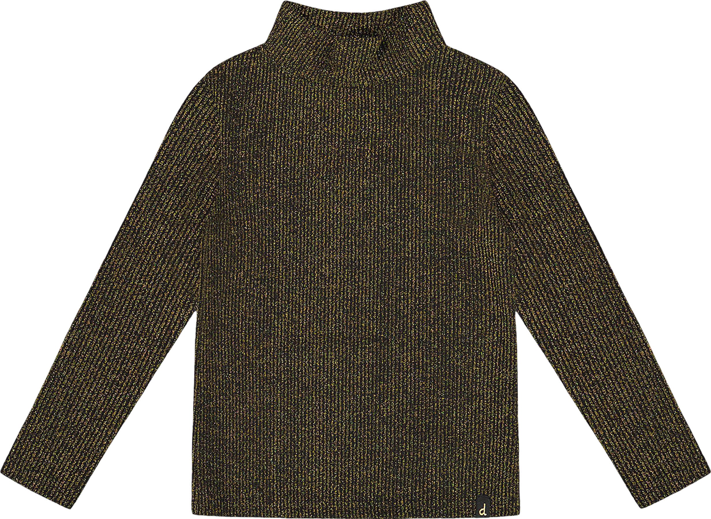 Our Shiny Rib Mock Neck Top Black And Gold brings a festive shimmer to every outfit. This slim-fitting turtleneck-style top is made from stretchy rib fabric with subtle gold lurex for a sparkling finish. Perfect for layering or pairing with a skirt or pants from our The Magic Of Xmas collection.