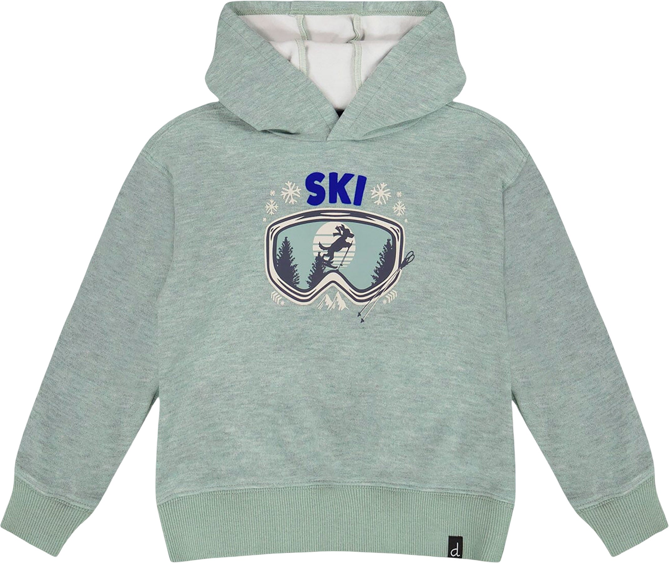 A ski goggle graphic makes this hoodie a must-have for the boy who loves the snow! Ultra-cozy in soft stretch brushed jersey, this pullover features long sleeves, an attached hood, rib knit trim at the cuffs and hem, and a playful ski print on the chest.