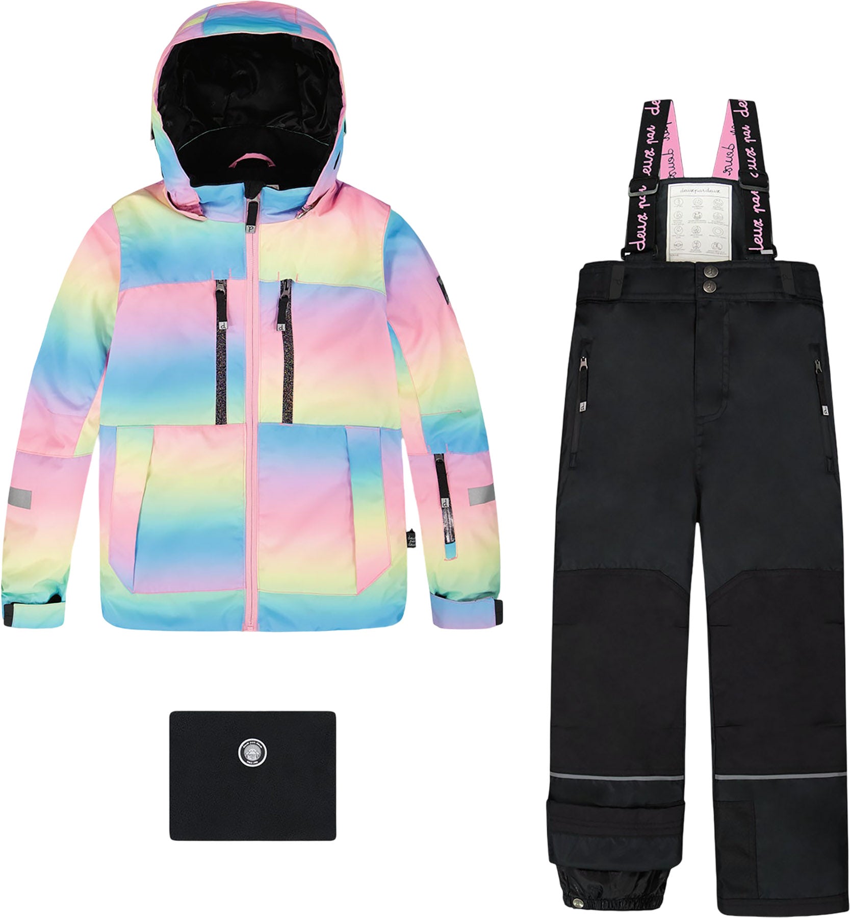 This two-piece Teknik ski suit offers superior function, incredible range of motion, and every technical detail kids need to stay safe, warm, and dry on the mountain. Waterproof, breathable, and filled with thin PrimaLoft insulation for warmth in temperatures as low as -30°C(-22°F), this snowsuit features a jacket with a detachable helmet-friendly hood, articulated sleeves with extendable length, a fleece lining for added warmth, and taped seams at all critical areas. The coordinating pants are constructed with articulated knees, functional pockets with waterproof zippers, adjustable hems, and an adjustable waistband with removable suspender straps.