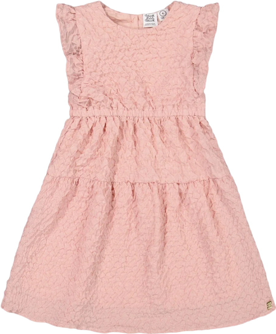 Rich with texture, this pretty pink dress is party perfection! Our Textured Poplin Dress Silver Pink features a classic A-line silhouette with flutter sleeves, a round neckline and a tiered skirt. The color, the feel and the shape make it a darling choice for her next birthday party or family celebration.