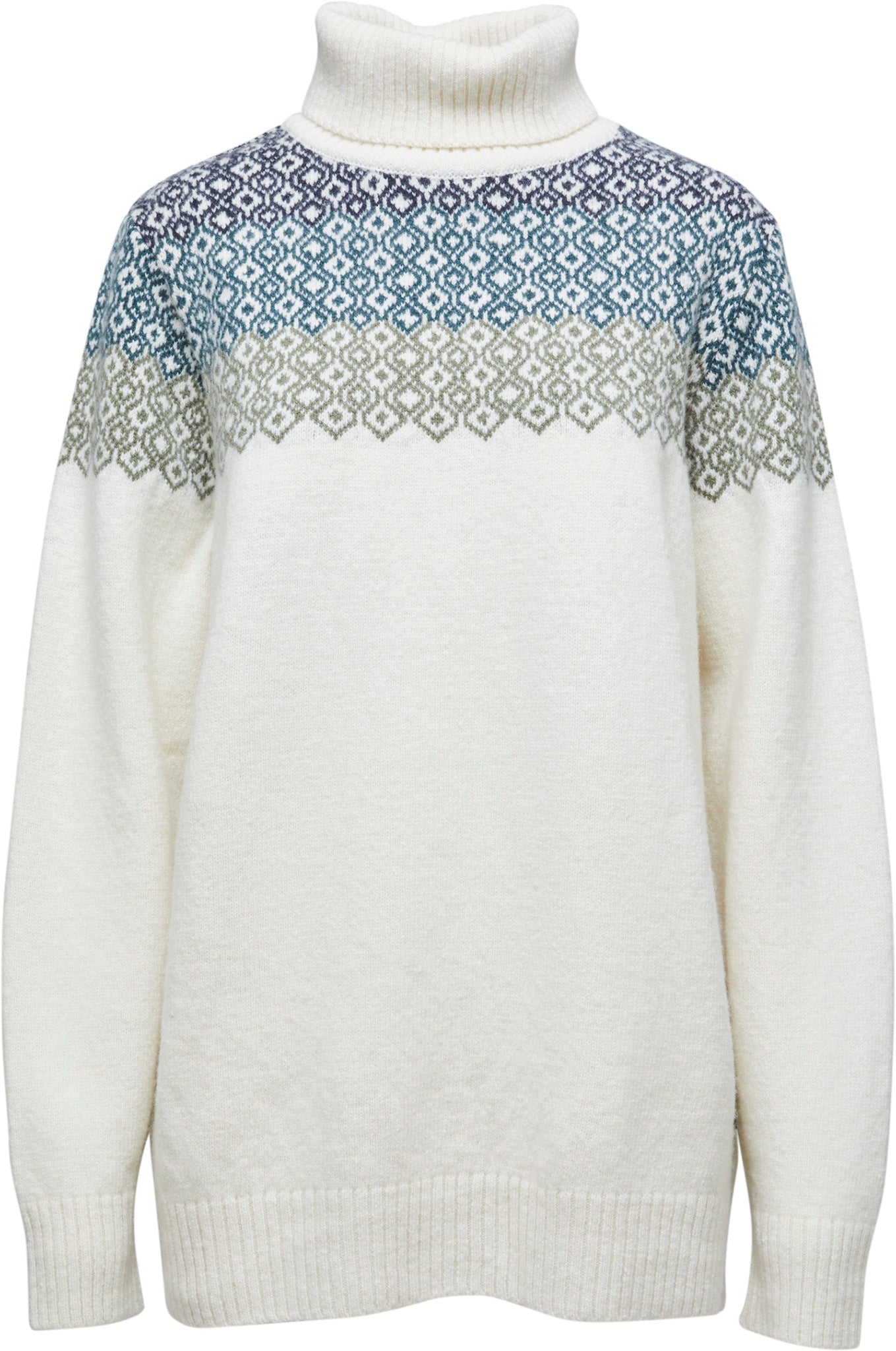The unique Devold pattern is found in the upper part of the sweater, giving the knit a feminine look. The soft knit is created with light and fine wool fibres, with a high neck rib-knit, and rib-knit on the cuffs. Fits perfectly over a Devold baselayer.