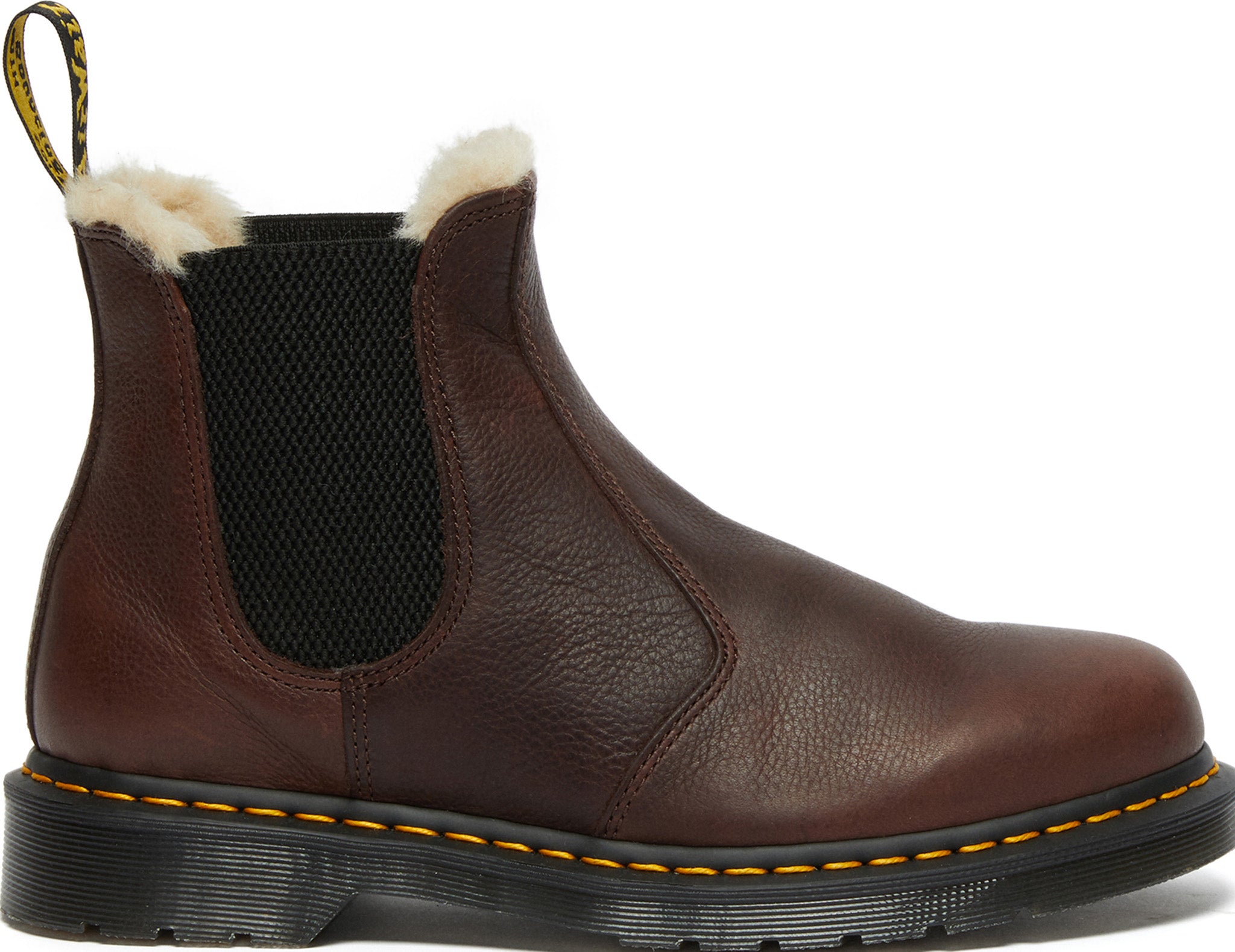 Take on the winter months. These boots are lined with a faux fur sock and manufactured from Ambassador a heavyweight tumbled leather. Designed to take difficult weather in their stride they're instantly recognizable as a Docs boot with yellow stitching and black and yellow heel loop.