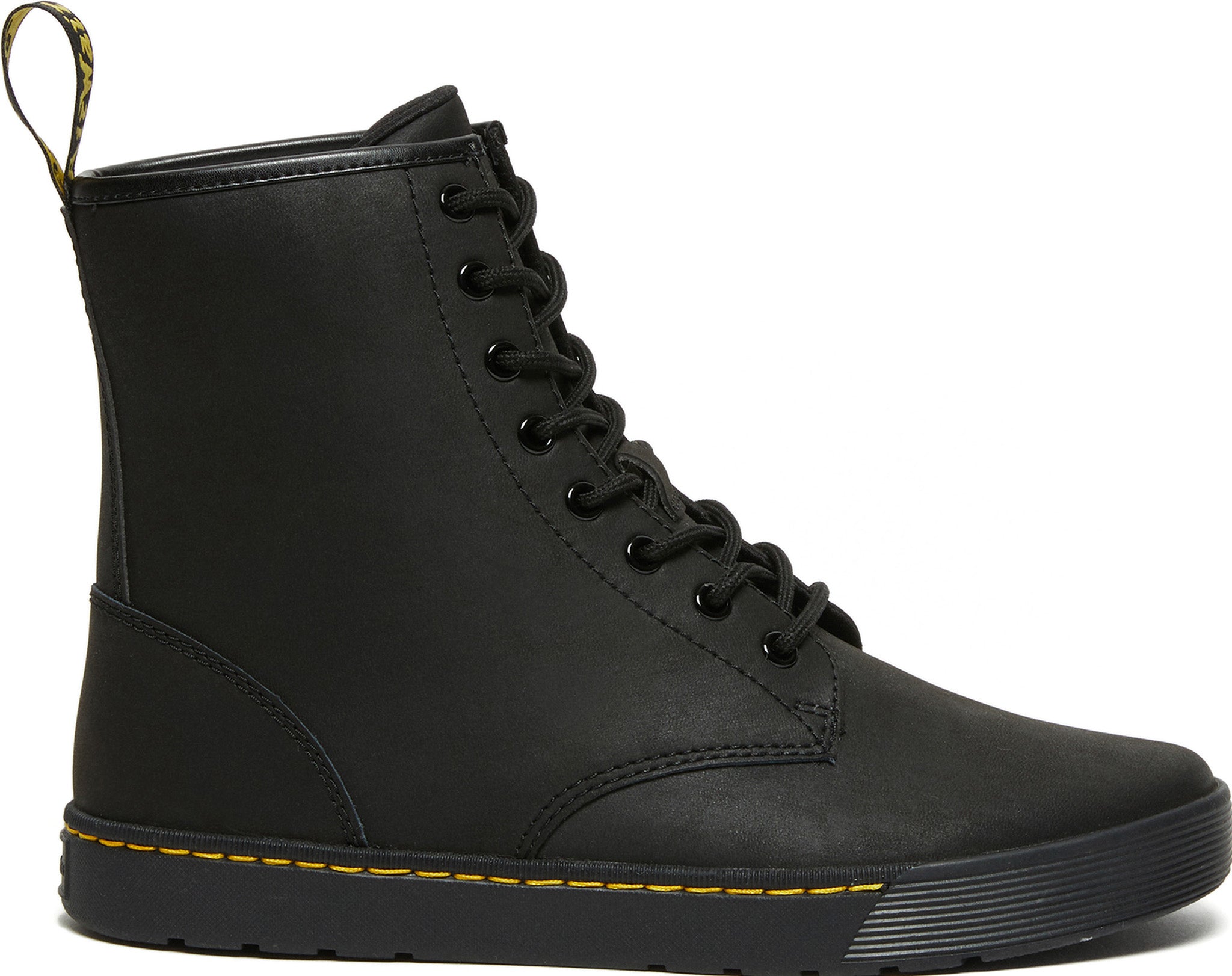 The classic street shoe. Toughened up to DM's levels. The Cairo is built from tough Mohawk leather in our classic 8-eye silhouette, and sits on a rugged air-cushioned sole. The shoes are marked with mock yellow stitching around the sole.