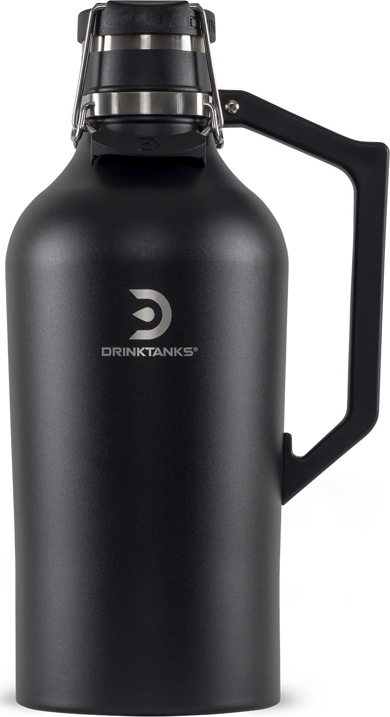 The Juggernaut – DrinkTanks® 128 oz Insulated Growler. It is made from high quality 18/8 stainless steel, and has double wall vacuum insulation. The BPA free poly cap is secured by a sturdy double bail locking system that is leakproof and keeps contents cold for 45+ hours and hot for 20+ hours.