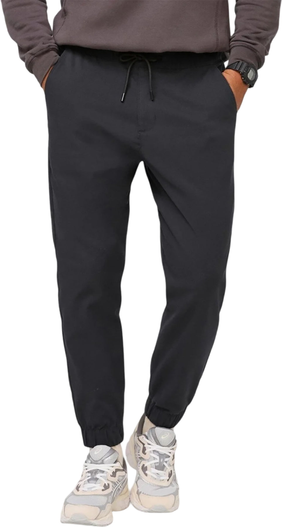 Relaxed through the hip and thigh, with a streamlined leg and jogger cuff, this pant seamlessly blends style, comfort and functionality. Crafted from a blend of natural and performance fibres, this jogger-style pant boasts a sleek and luxurious appearance while providing everyday wearability. It integrates power stretch with our signature gusset for all-day comfort.