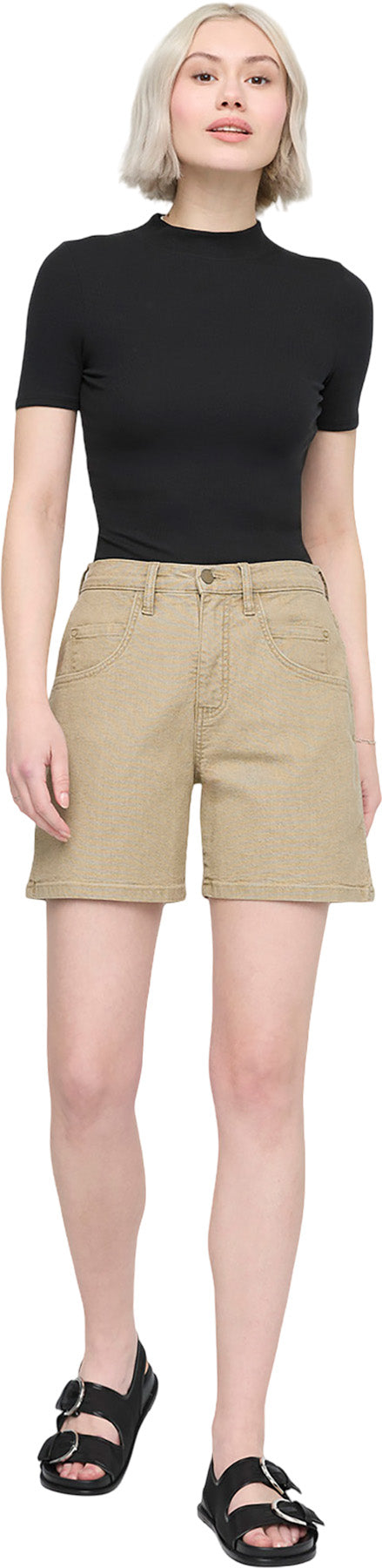 Crafted from unique stretch canvas fabric, this high-rise short combines durability with style.