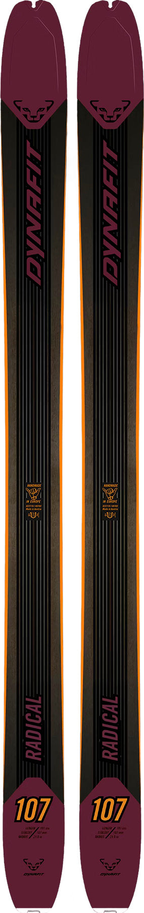 Playful, nimble and stable: The highly varied Free 107 Unisex touring ski makes the hearts of freeskiers beat faster with its medium width of 107mm. Its light construction with 100% poplar wood core and the time-tested Dynafit carbon speed stringers allow you to save your energy on the way to the perfect line so you can give it your all on the descent. Dynafit has proved: A descent-oriented ski must not be heavy at all! A modern sidecut and the newly developed rocker at the tip and tail together with a balanced flex for fluid performance characteristics transform these skis into the perfect companion for untouched powder, steep couloirs and diverse descents. Even in demanding ski conditions or when wearing a heavy backpack, you maintain full control and execute perfect ski turns. The slightly raised tip lends improved turn initiation and easy float-even when the snow on a good day is chest deep. The full sidewalls guarantee direct power transfer to the edges for best performance and stability no matter where you are. Free 107-A best friend for deep powder days.