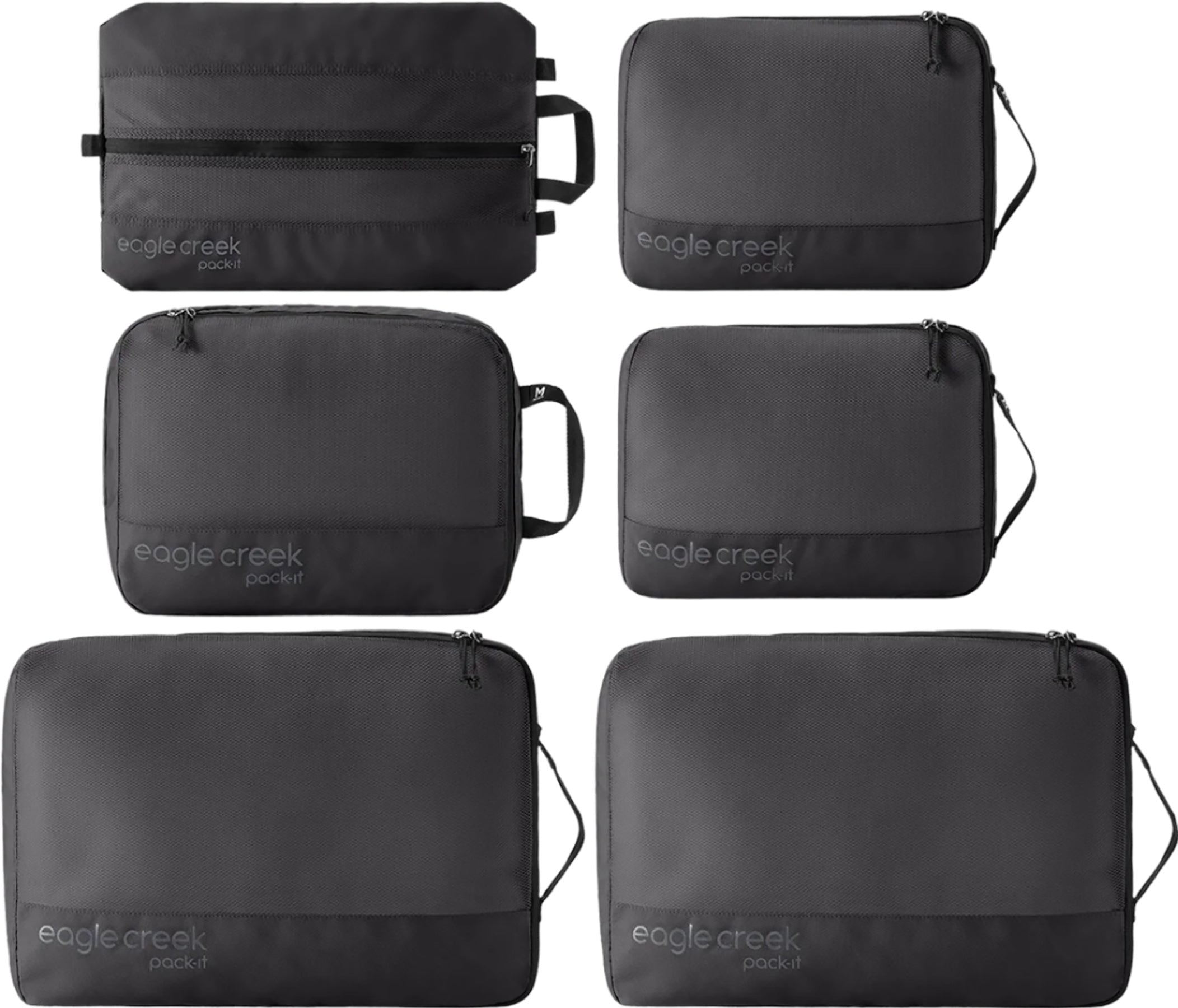 Includes • 2 Pack-It Reveal Cube L • 2 Pack-It Reveal Cube M • 1 Pack-It Reveal Shoe Sack • 1 Pack-It Reveal Clean/Dirty Cube M