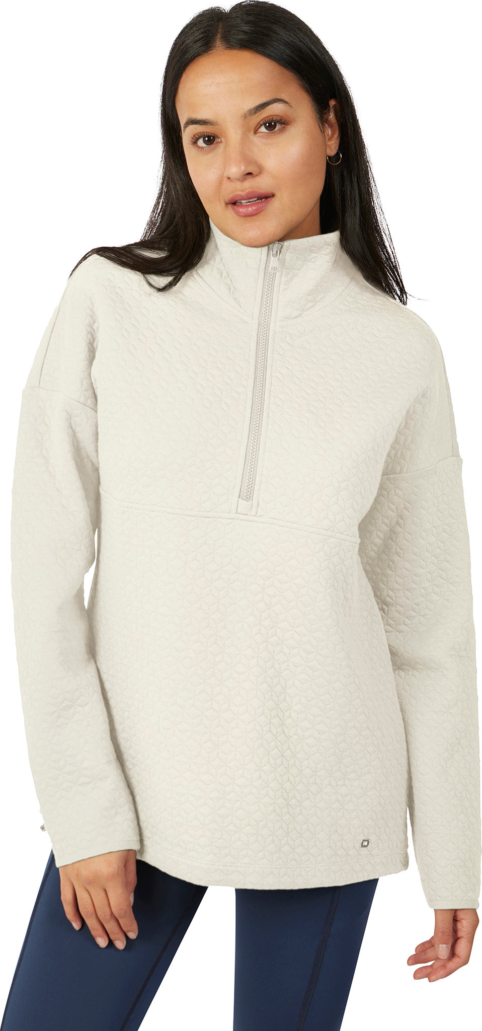 This long half zip top combines optimal warmth with lightness thanks to its AirQuilt™ fabric design made from recycled polyester and cotton. It offers impeccable style and unmatched comfort. Perfect for day hikes or relaxed evenings by the fire. Quilted fabric with thermal retention, stretch, easy-care and offering sun protection(UPF 50+).