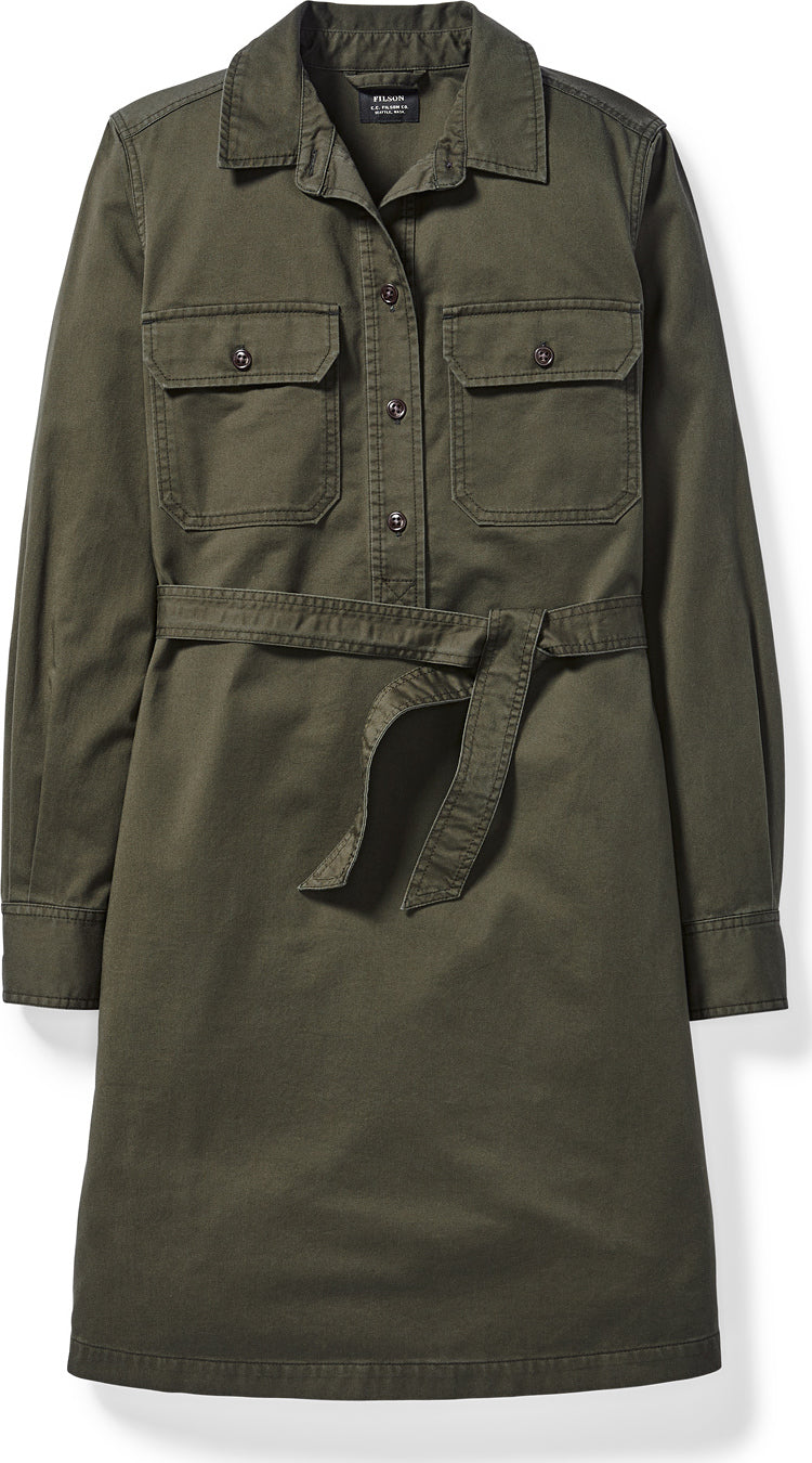 Features • Spread collar . • Side vent at hem and belted waist with belt loops. • Pleated chest pockets with military-grade melamine button-flap closure. • 6.3-oz. 100% cotton sateen. • Imported.