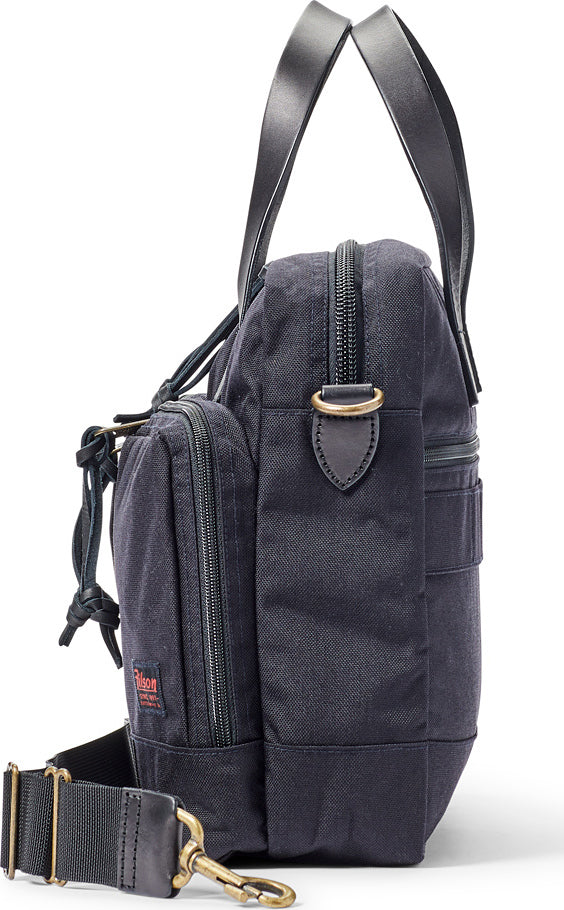 The versatile Dryden Briefcase is made of abrasion-resistant 1000D Cordura® nylon that holds up to heavy use. A padded sleeve fits laptops up to 15", and a trolley strap slides over luggage handles.