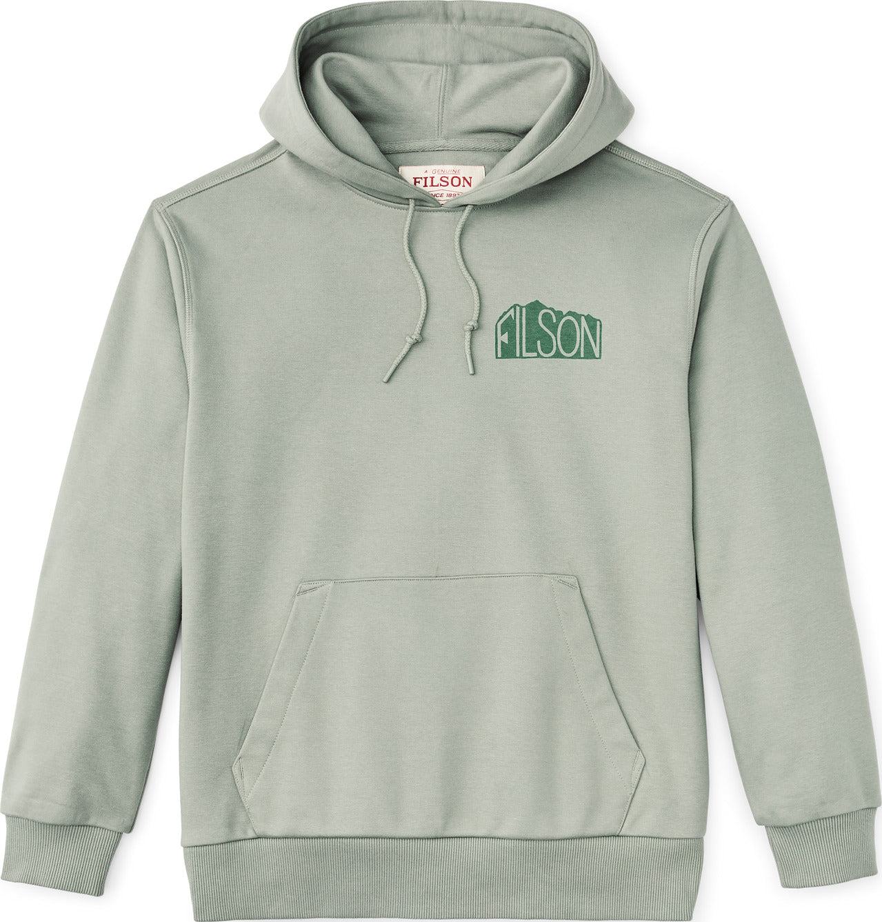 A go-to favorite, our Prospector Graphic Hoodie is made with a strong cotton blend that’s tightly knitted to deliver outstanding durability and warmth. The durable 75% cotton/25% polyester fabric features a lofted interior for heat-trapping warmth and a smooth exterior surface that resists pilling. The polyester in the blend aids shrinkage control. The hem and cuffs are built with a wide and sturdy rib-knit for a custom fit with outstanding stretch and recovery. The generously sized hood easily fits over a ball cap and is drawcord-adjustable for security in the wind. Finished with a front kangaroo pocket and custom graphics designed in-house at Filson.