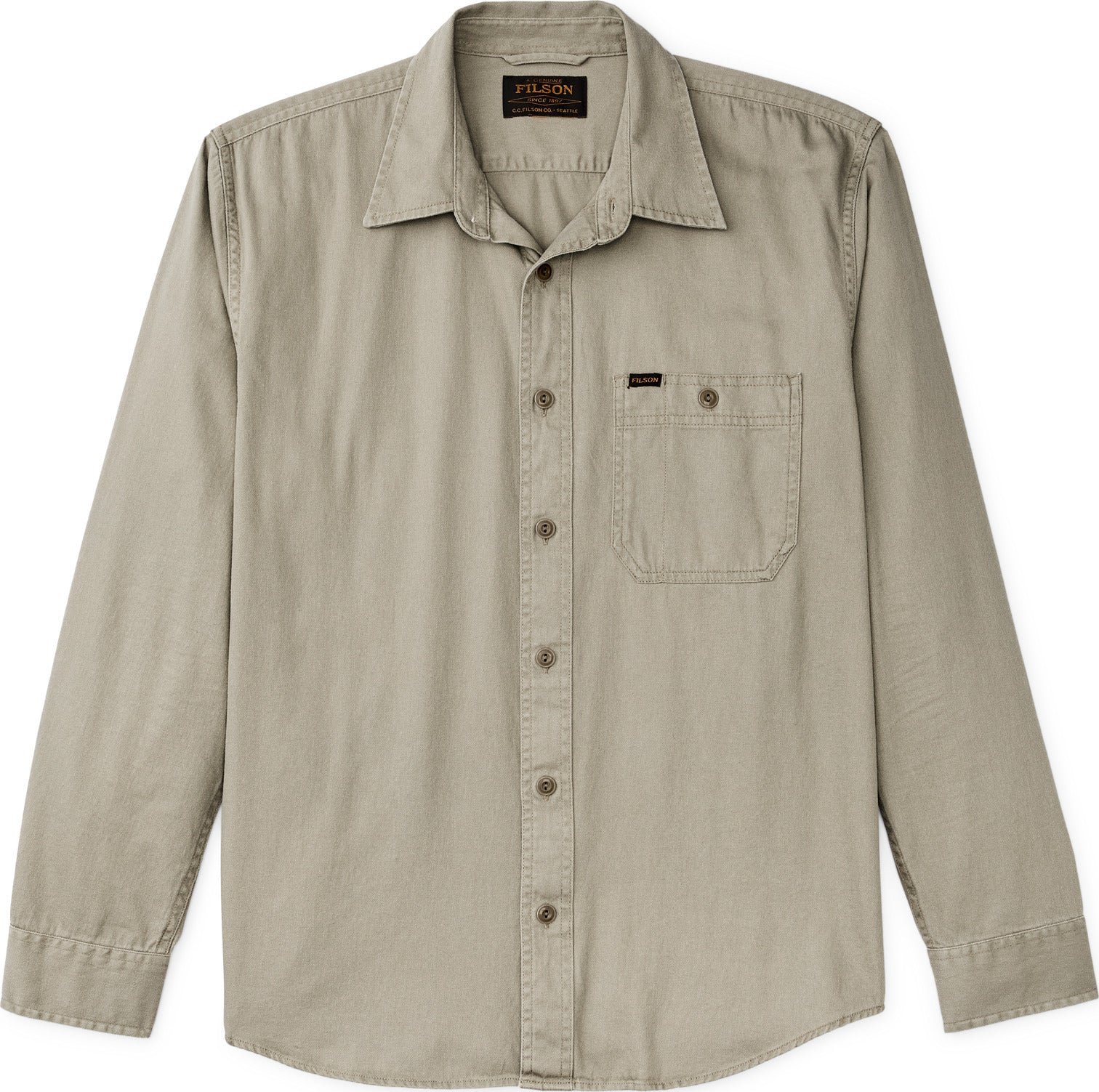 Made of midweight 100% cotton, the Shipwright Fine Twill Shirt is tightly woven with a faint diagonal rib common to twill fabrics. Dual shoulder pleats provide ease of motion. The left chest pocket is slotted for holding a scribe or carpenter's pencil. Button-front with spread collar.