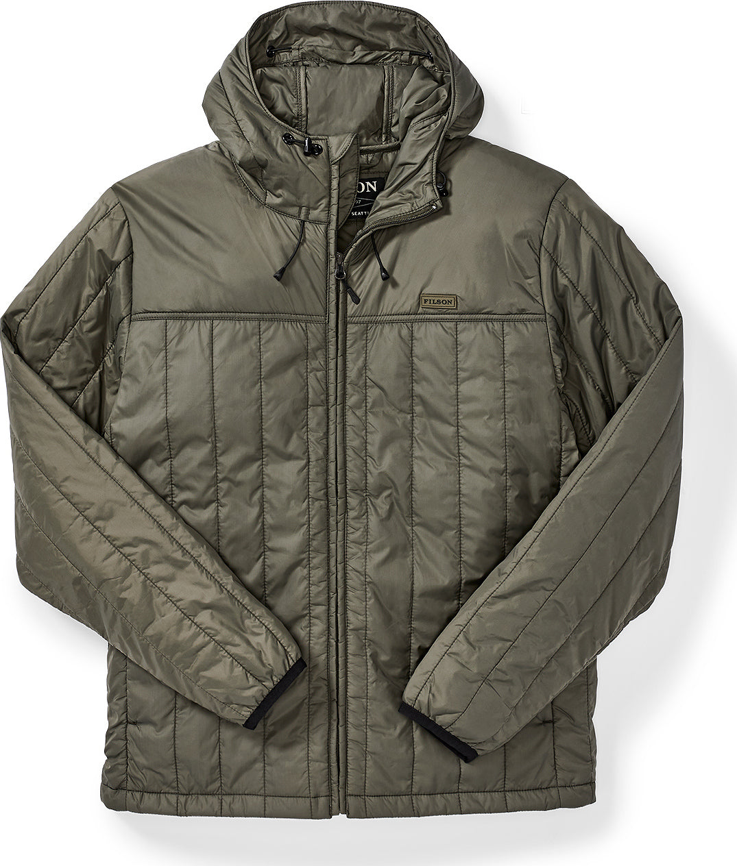 Made with a 1.5-oz. Cordura® ripstop nylon shell and insulated with 60g PrimaLoft® Gold, the Filson Ultra-Light Hooded Jacket is highly packable and surprisingly warm—made to be worn solo or as an insulating mid-layer in colder temperatures. Because PrimaLoft® Gold retains 98% of its warmth when wet, it boasts unmatched versatility in any weather. The full-length zipper has a zipper garage, so it’s comfortable when zipped all the way to the chin. The elastic cuffs and drawcord-adjustable hood and hem ensure a snug fit that seals in warmth, and zippered, Moleskin-lined handwarmer pockets add even more warmth and comfort. Features an interior zippered security pocket and a double layer of fabric over the yoke for durability.