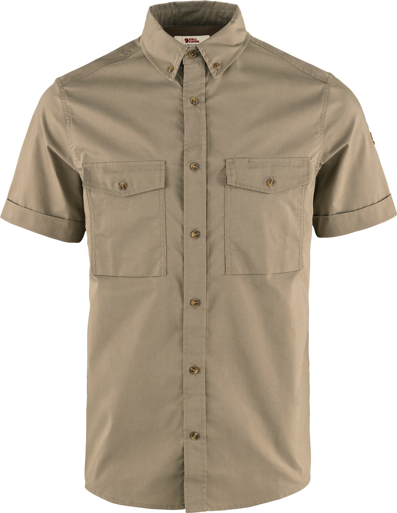 The perfect travel shirt, this short-sleeved shirt for men in a classic Fjällräven design will keep you cool no matter how hot it is. Made from G-1000 Air Stretch that is light, airy, durable and extremely comfortable thanks to its recycled polyester/organic cotton blend and mechanical stretch. Button-down collar and two chest pockets with buttoned flaps, one with a pen opening. Fold-up sleeves and a box pleat at the back for extra comfort and freedom of movement. Leather logo on sleeve.