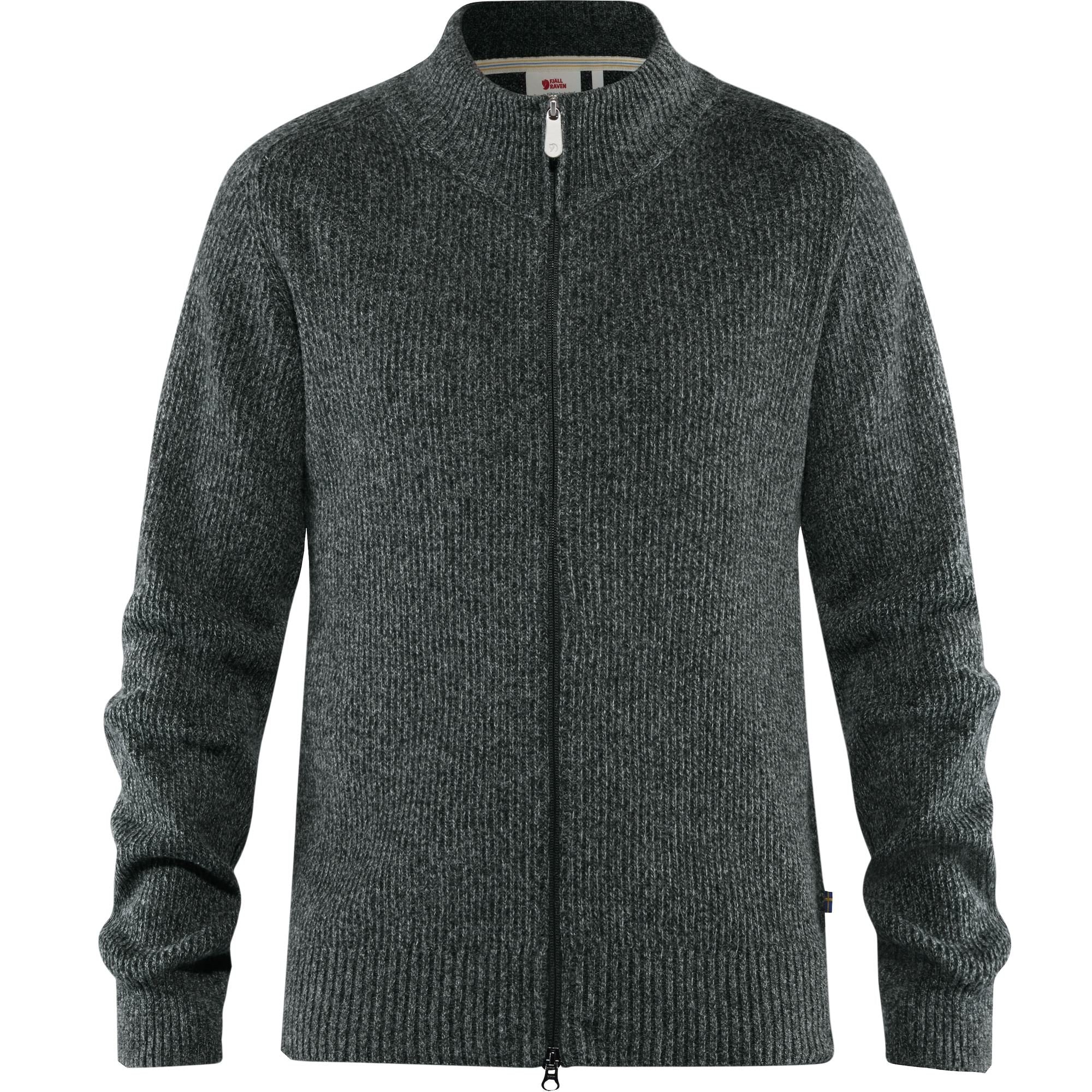 The men's GREENLAND Re-Wool Cardigan by Fjallraven is partially recycled and all-comfort with a classic design that looks to the future. 70% recycled wool is rib-knit all the way through for better insulation and heat retention. The full front zip makes for easy wearing. Zip it all the way up for a high collar.