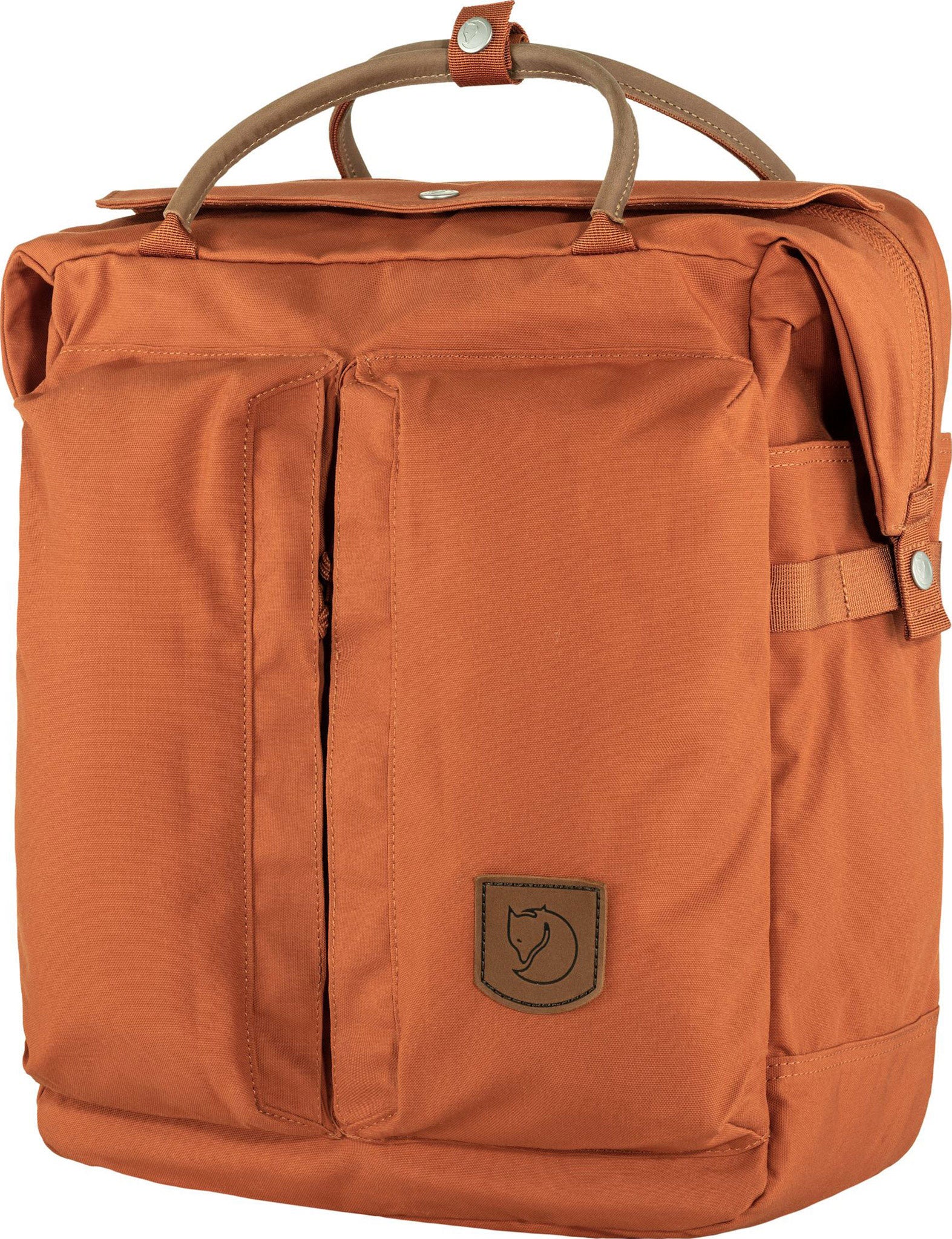 Features • Durable G-1000 HeavyDuty Eco in recycled polyester and organic cotton • Padded textile shoulder straps and leather handles at the top • Padded laptop compartment that fits most 15” computers (up to 37 x 30 x 2.5 cm) • Large zippered front pocket with inside compartments • The extra-long opening folds over to cover and secure side pocket openings.