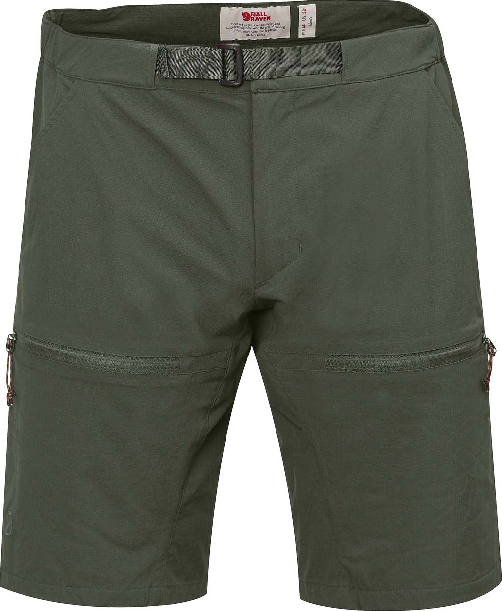 Features: • Lightweight and comfortable shorts. • Made from a light stretch fabric that wicks away moisture and dries quickly. • Longer knee-length cut with gusset at the crotch for extra comfort. • Elastic waist and webbing belt with easy-adjust buckle. • Two hand pockets and two zippered leg pockets.