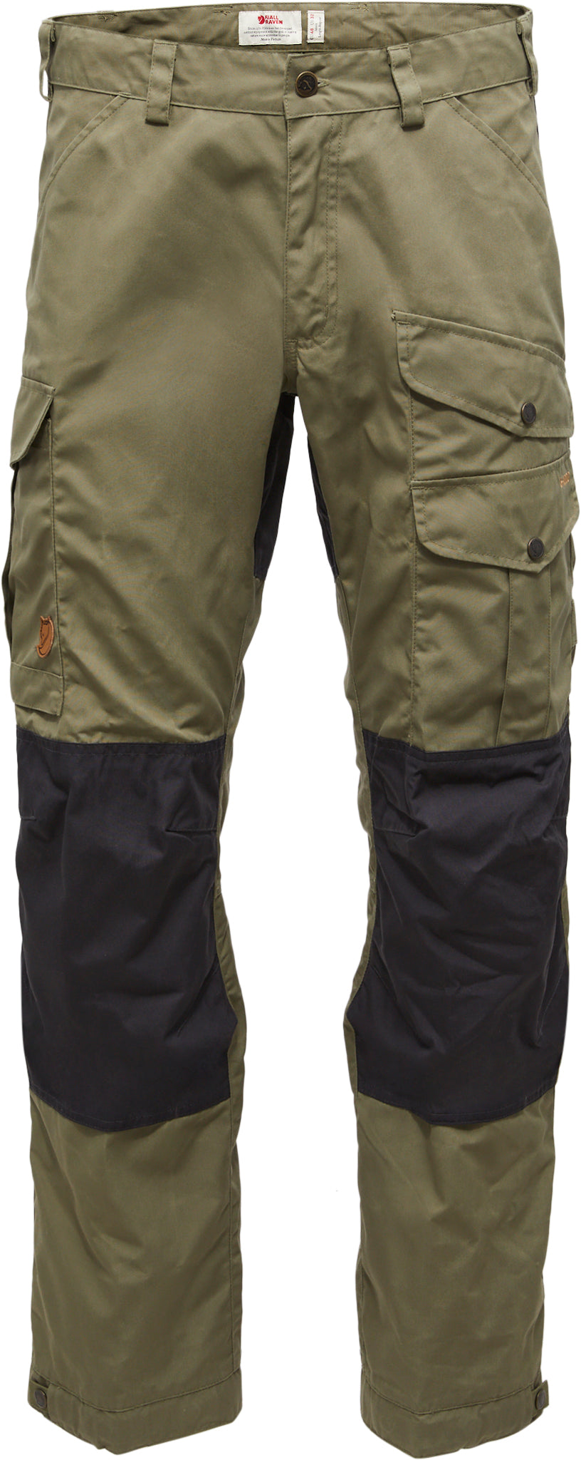 The men's Vidda Pro Trousers are rugged trekking trouser, designed for all day comfort and long-lasting durability. Fjällräven constructed these pants with their signature wind and water-resistant G-1000® fabric, with a double layering over the rear and knees for enhanced durability. The regular fitting Vidda Pro also has a adaptable mid waist and pre-shaped knees to help improve mobility on steeper pursuits. The pant has six total pockets, including a map pocket that secures with a button flap, a knife pocket, and knee pad pockets. The leg endings can be adjusted with elastic straps and press buttons.