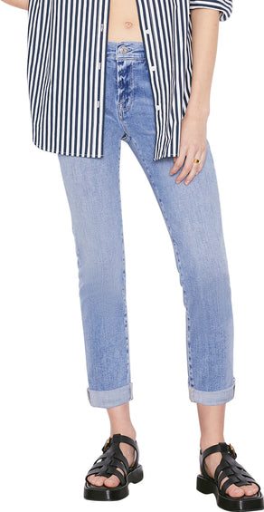 A sophisticated boyfriend jean with a tailored straight-leg silhouette. For a California-in-the-seventies vibe, style yours with sun-kissed stripes or an eyelet blouse.