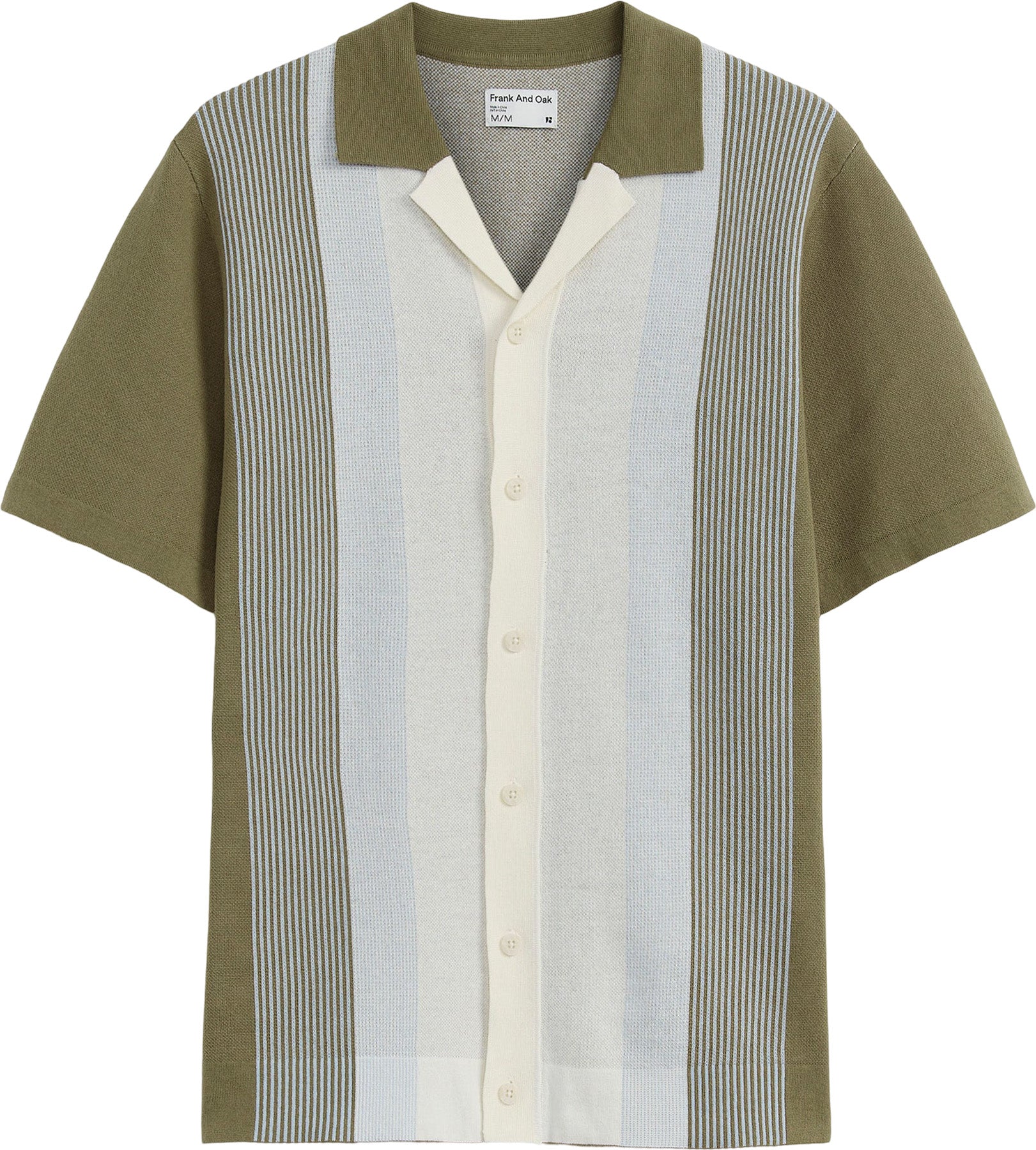 A retro-inspired staple. This shirt is made of a lightweight organic cotton knit. Multicoloured stripes at the front. Slim fit. Camp collar.
