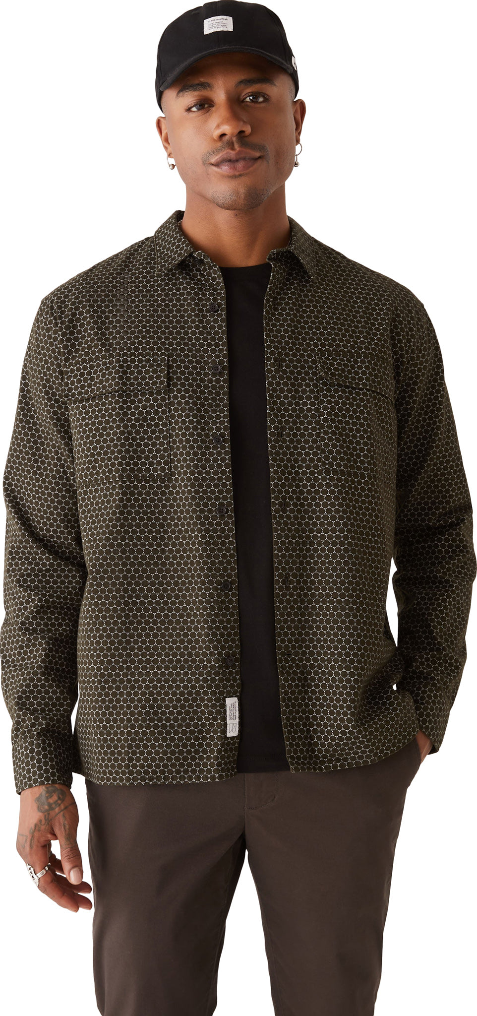 • Oversized fit • Body: Regular length • Closure: Button • Collar: Regular • Hemline: Shirttail Hem • Neckline: Round • Pattern detail: Other AOP • Pocket: Patch with Flap • Long Sleeve